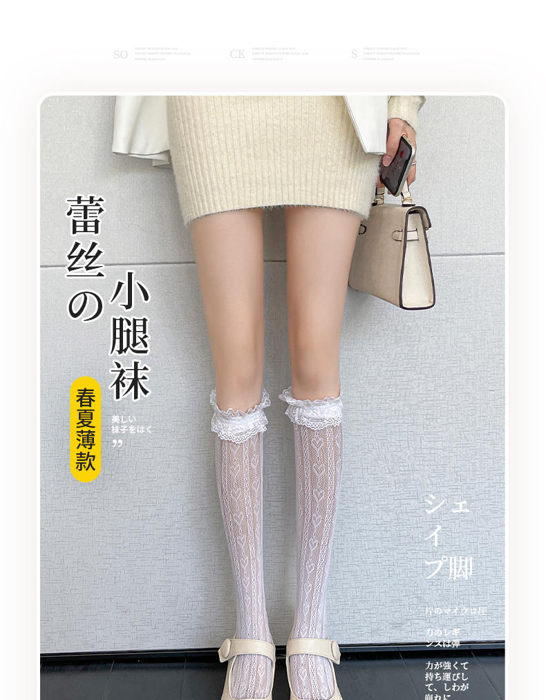Кружевные колготки, белые тонкие летние черные носки, средней длины, стиль Лолита