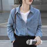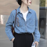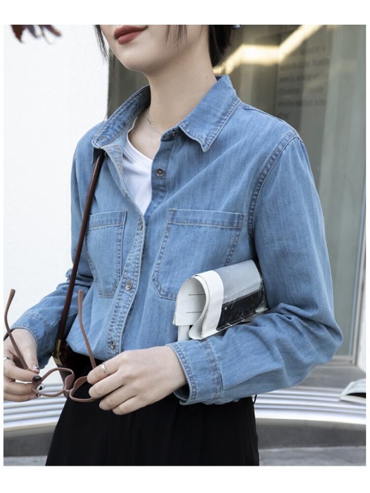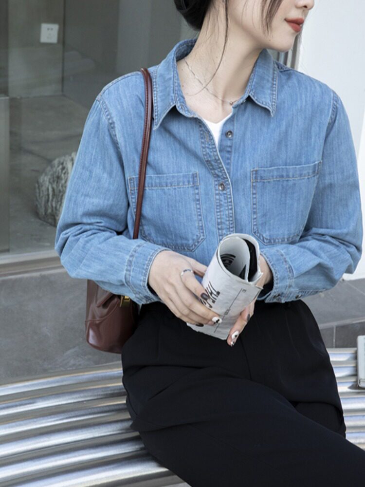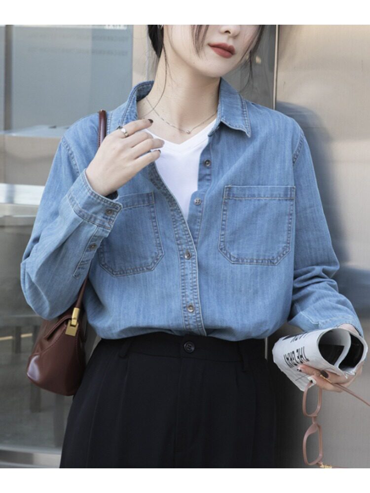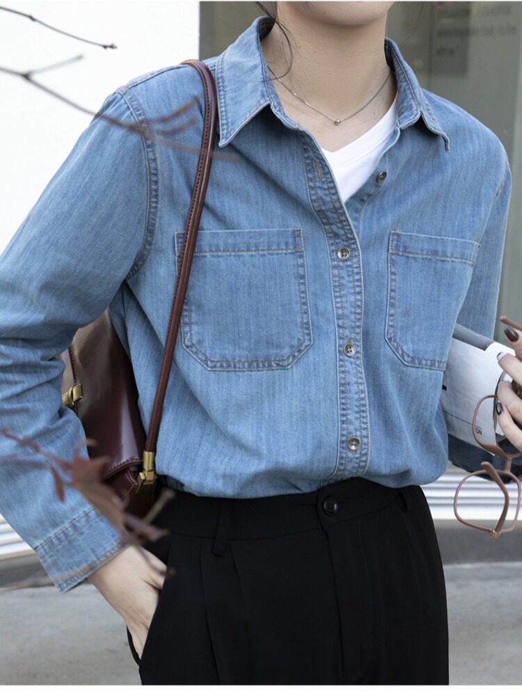 Синяя ретро осенняя дизайнерская рубашка, тренд сезона