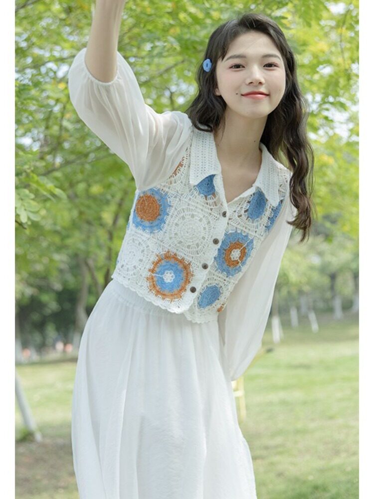 Дизайнерский пляжный летний свежий ретро кардиган, тренд сезона, пляжный стиль