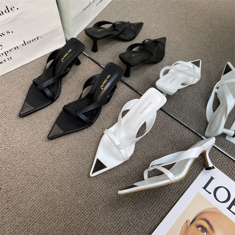 Металлические высокие сандалии с заостренным носом, сексуальная обувь, пляжные слайдеры, тапочки, европейский стиль