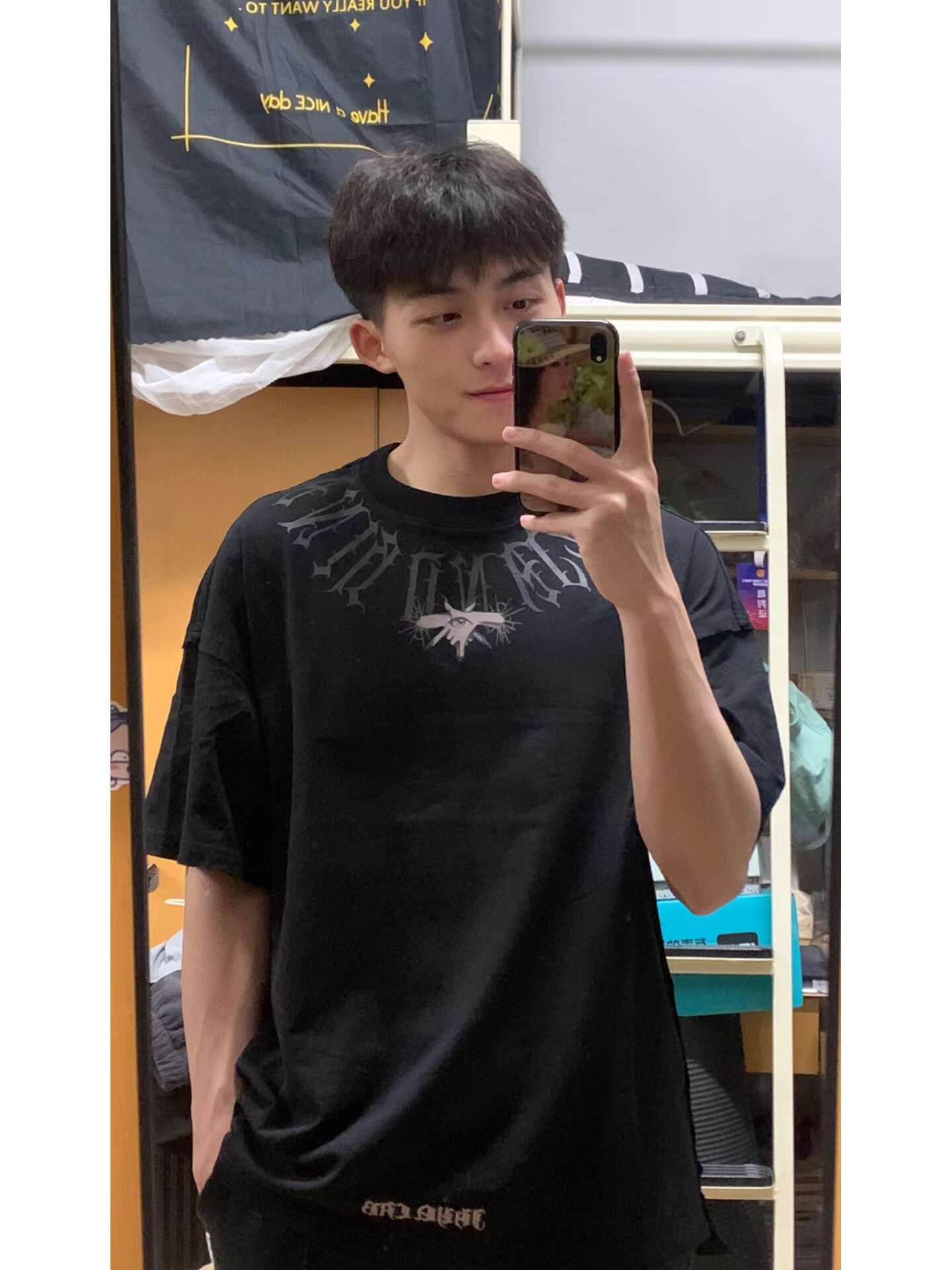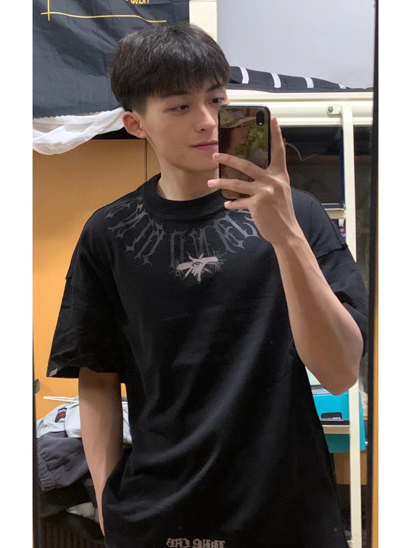 Ретро футболка с коротким рукавом, глазное яблоко в стиле хип-хоп с круглым воротником, в американском стиле