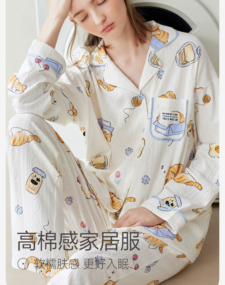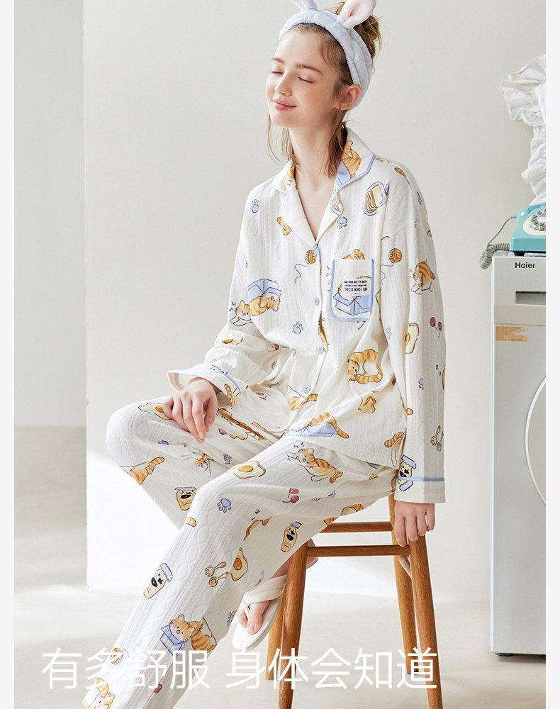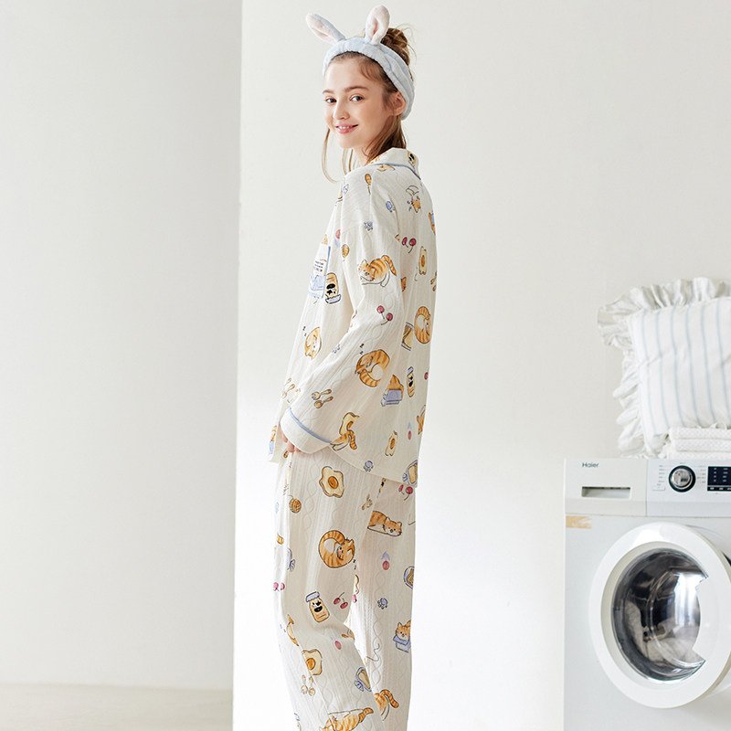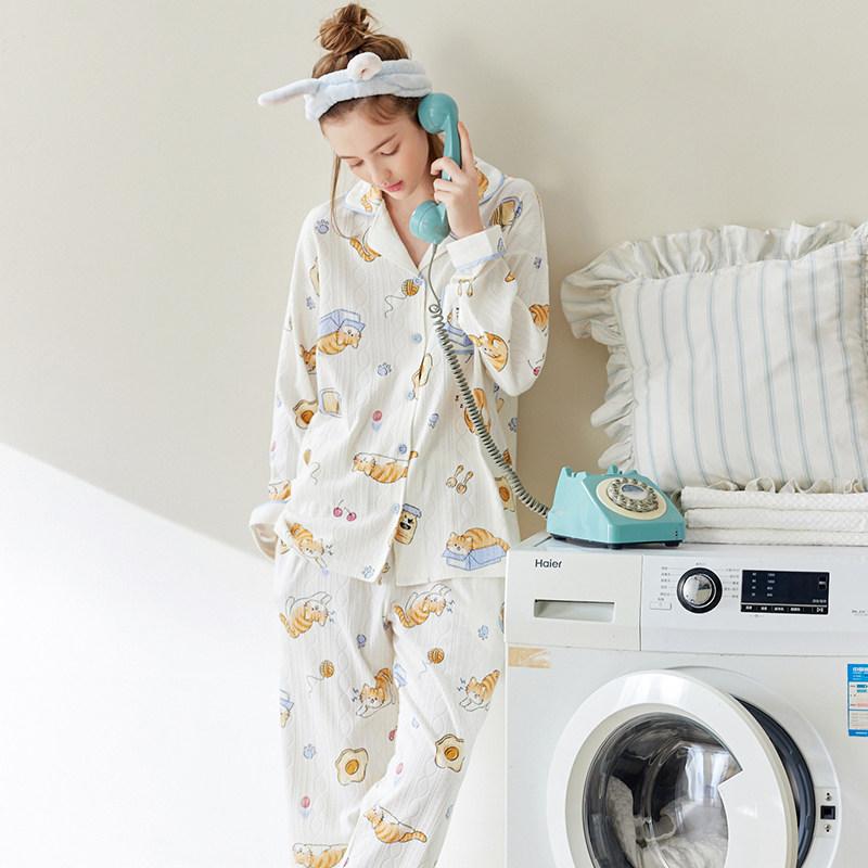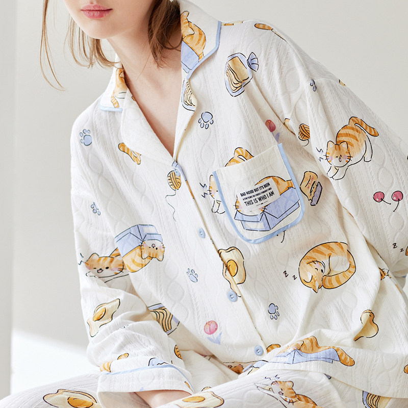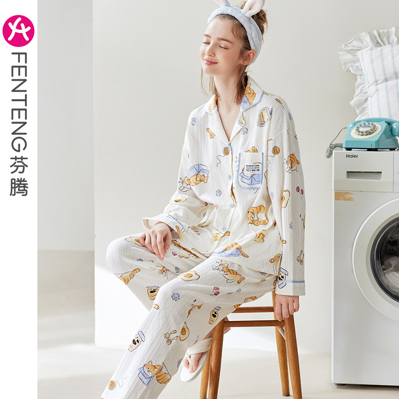 芬腾 Осенняя пижама, хлопковый лонгслив, нарукавники, мультяшный милый комплект, кардиган, оверсайз