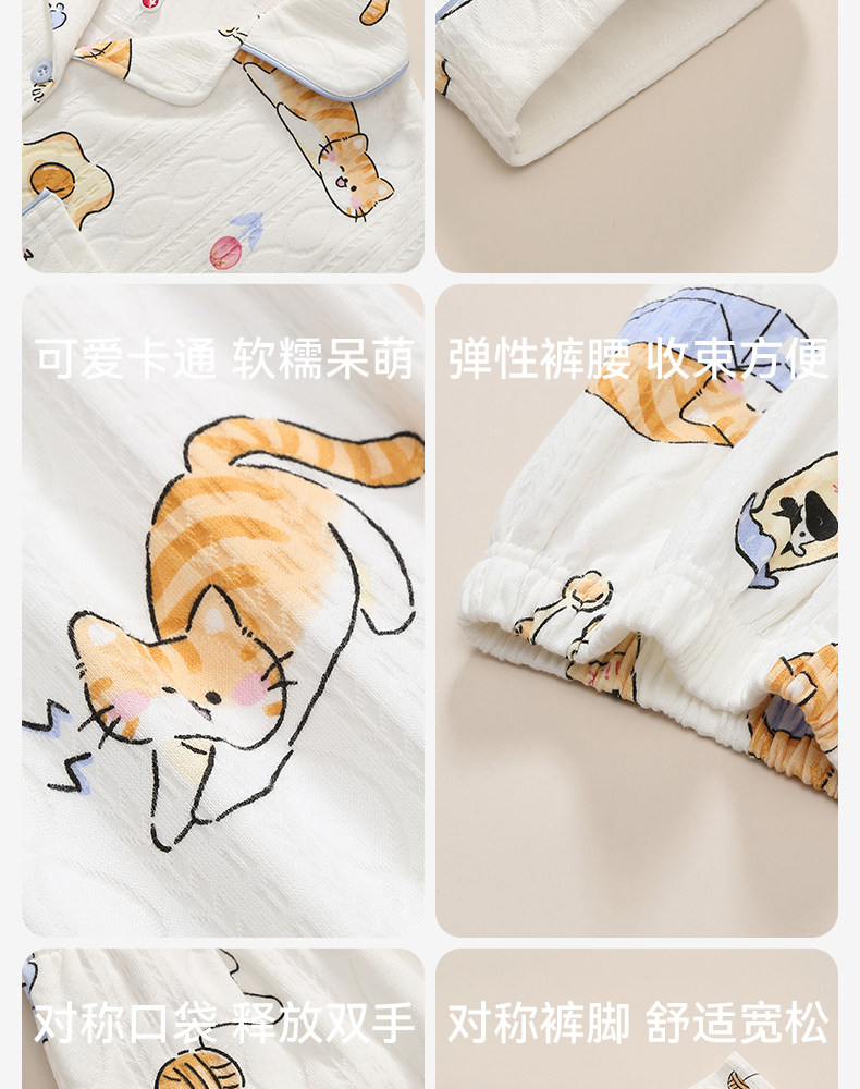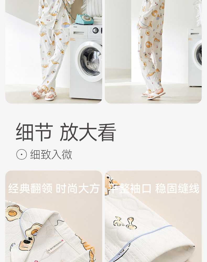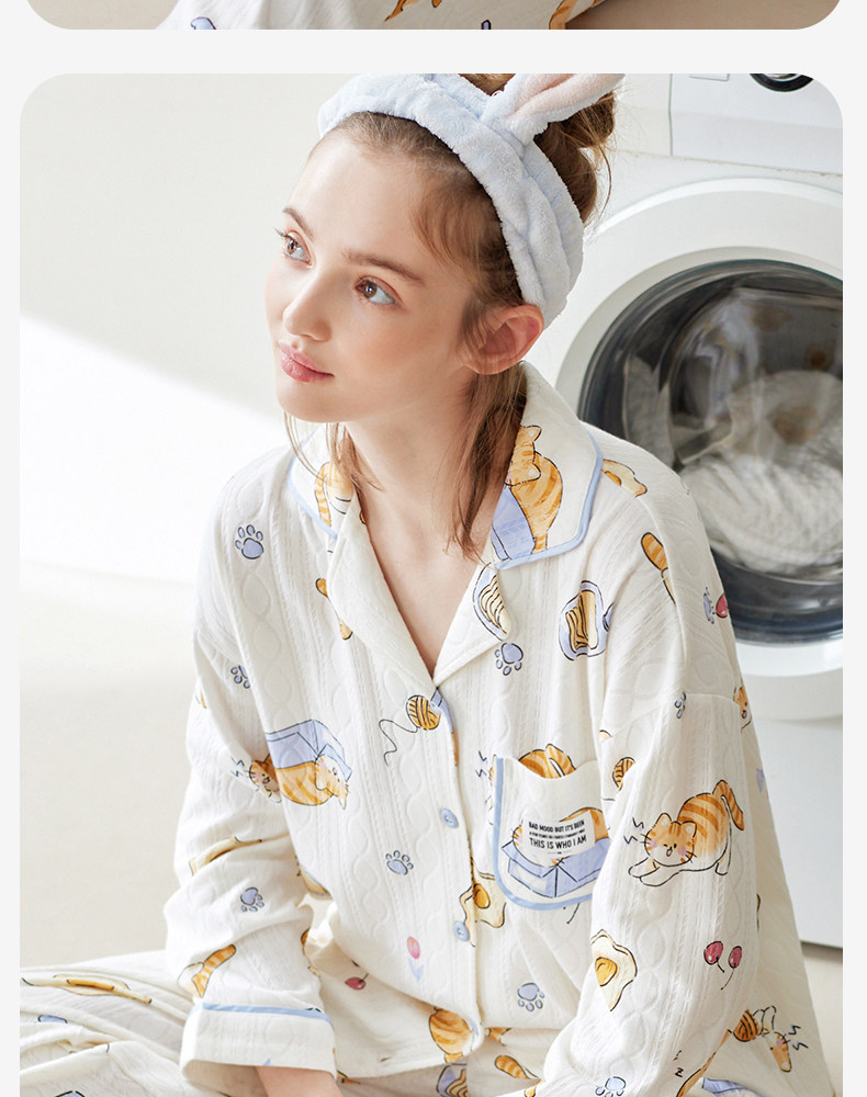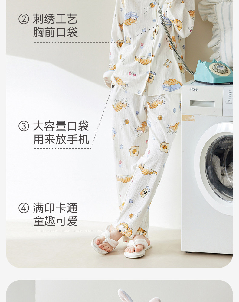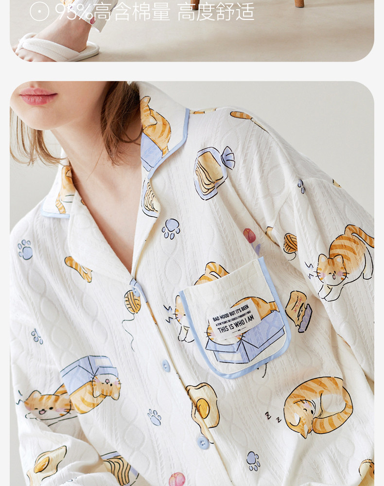 芬腾 Осенняя пижама, хлопковый лонгслив, нарукавники, мультяшный милый комплект, кардиган, оверсайз