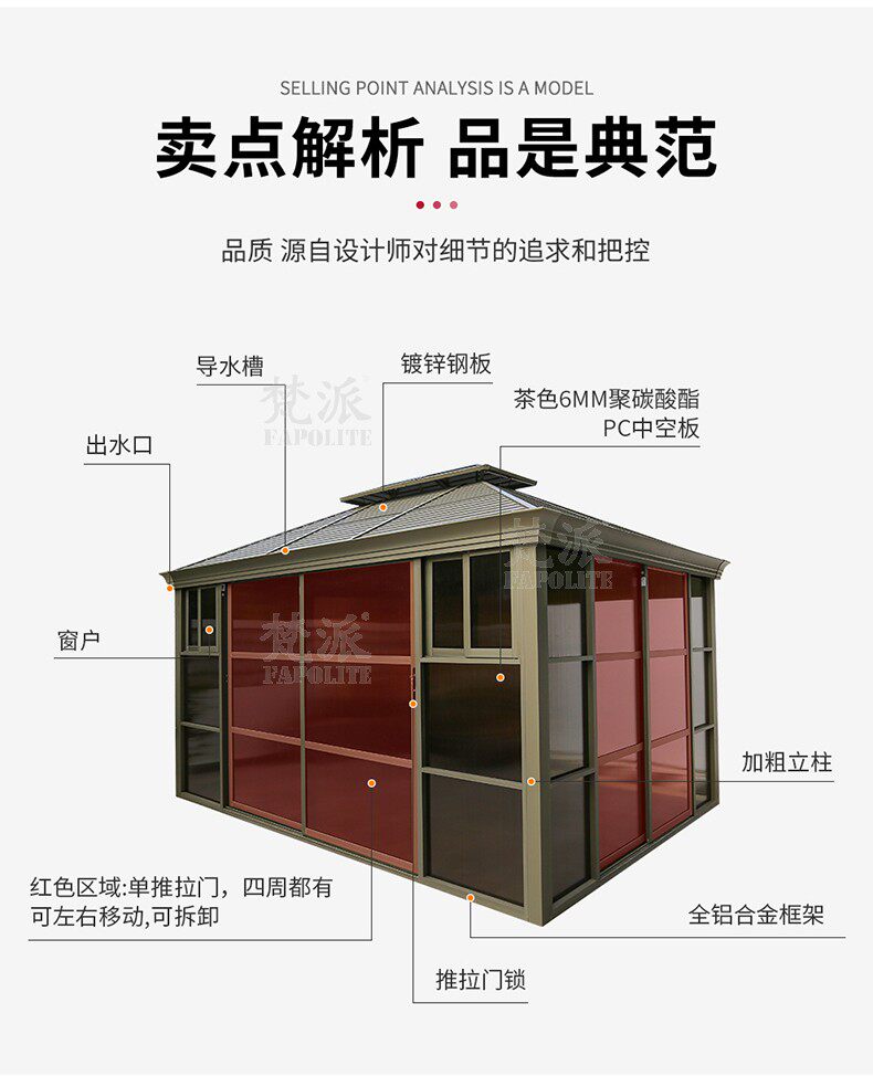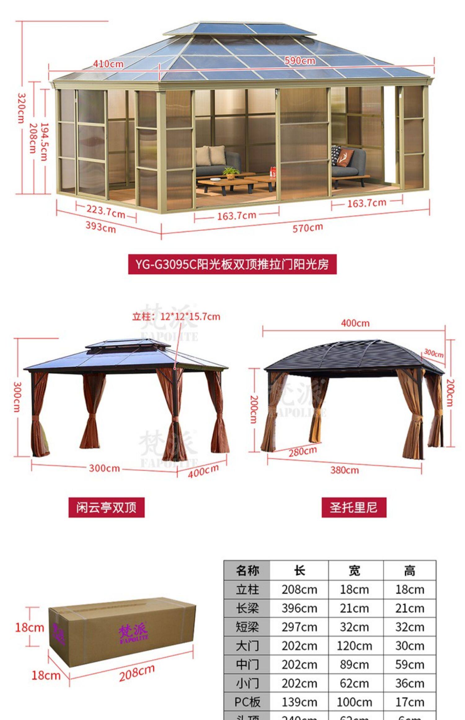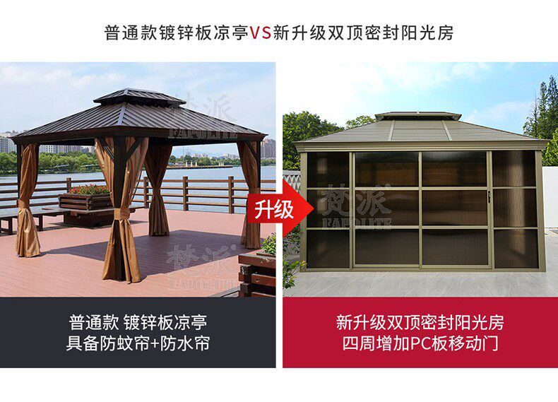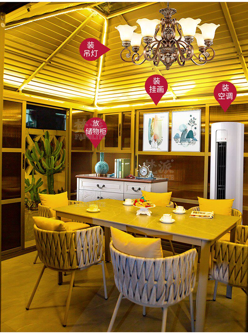 Открытый павильон вилла сад сад современный корт повседневного солнца Дом B & B Китайский в стиле хрустальный алюминиевый беседка