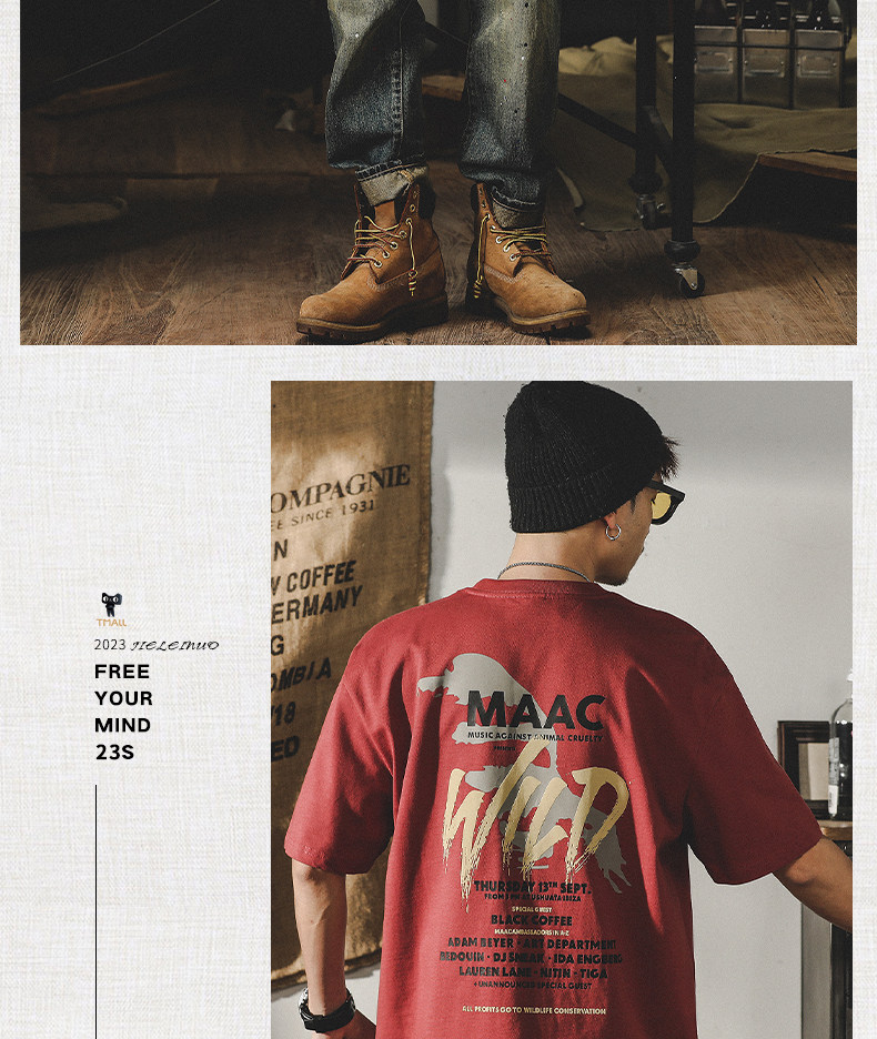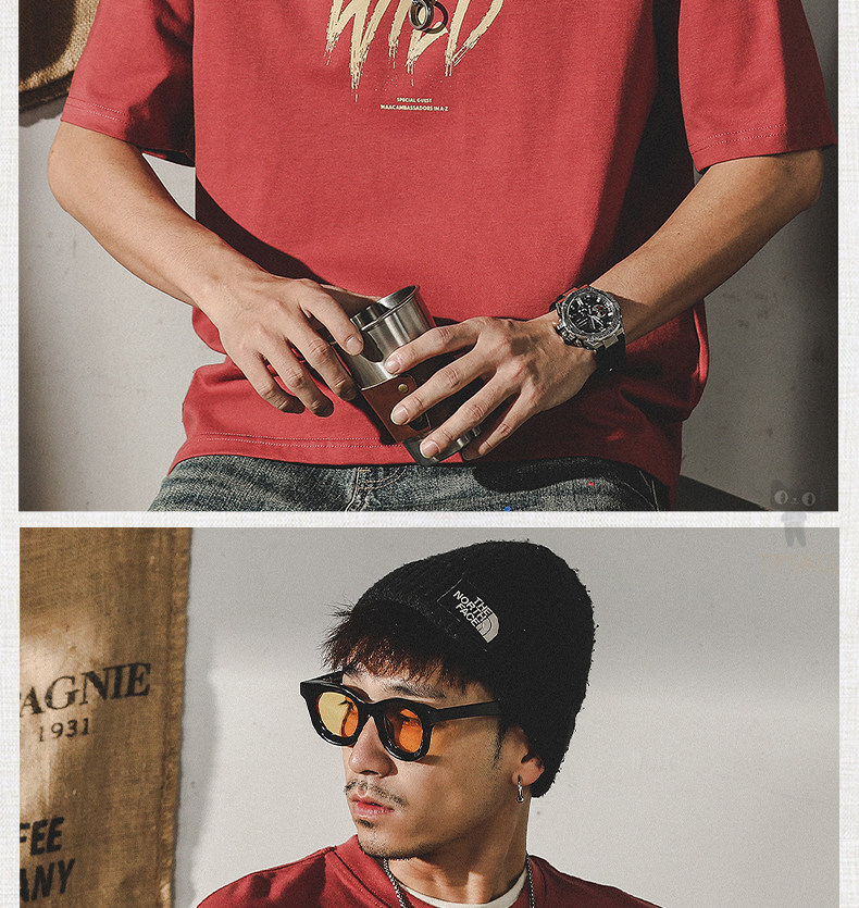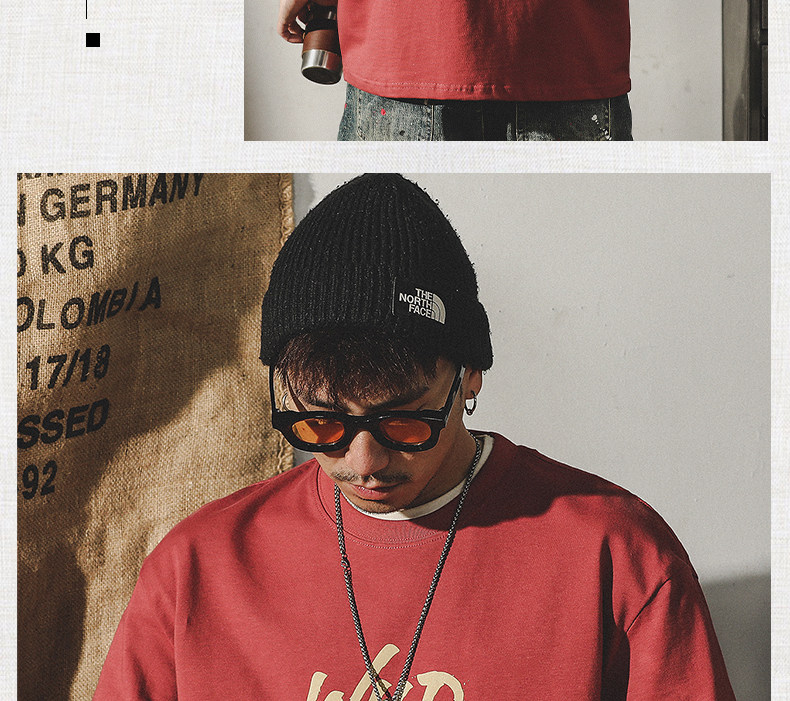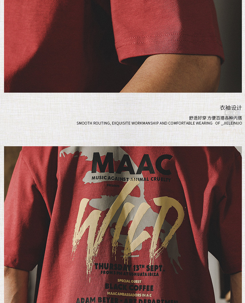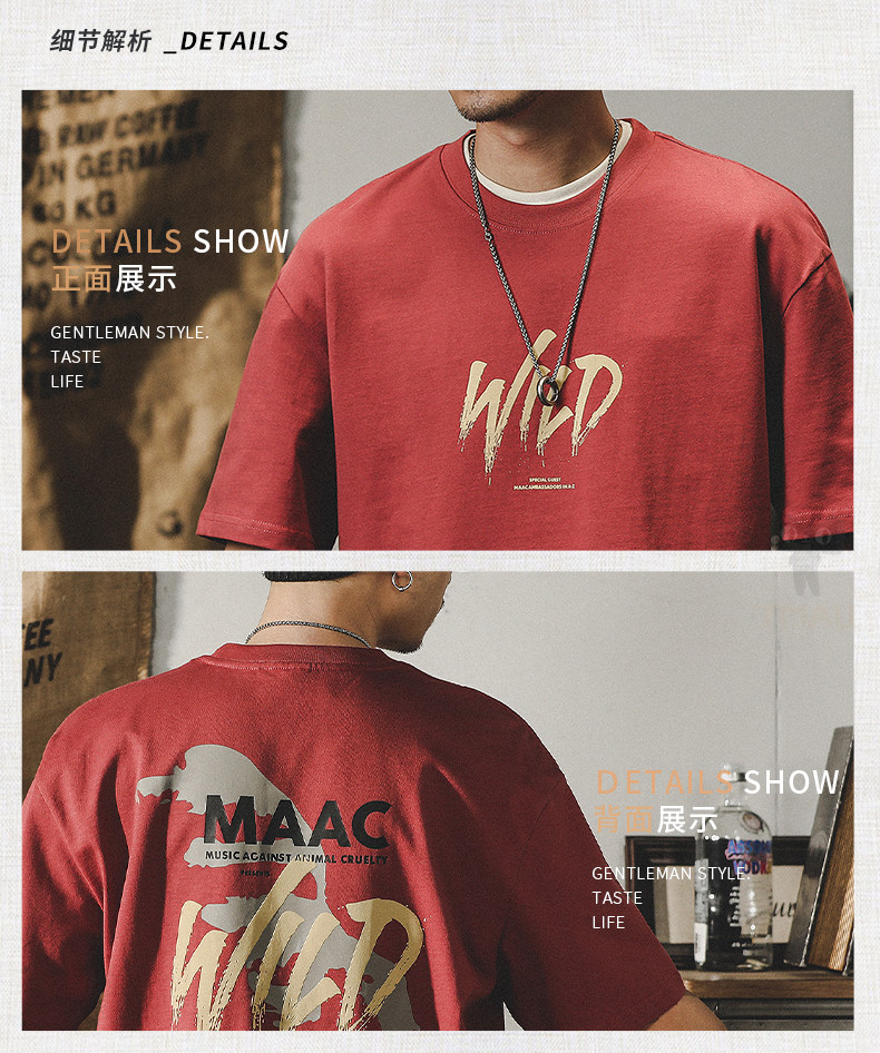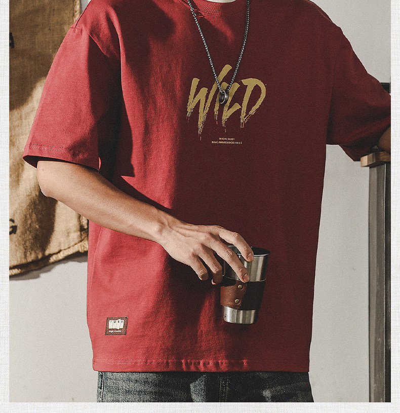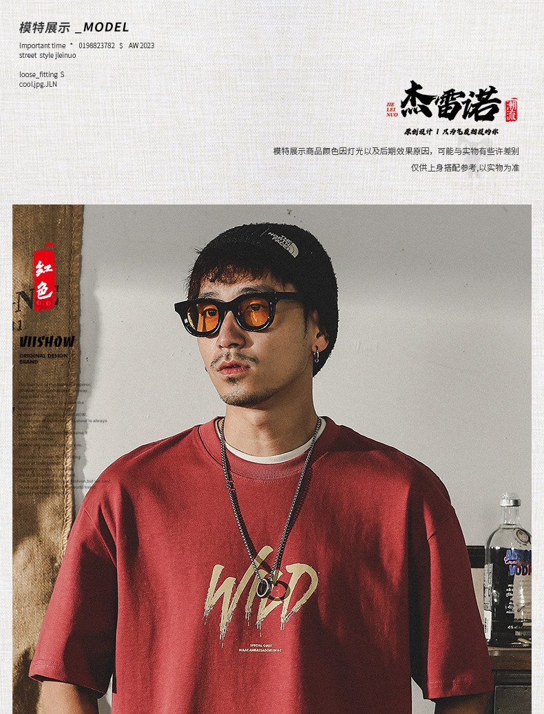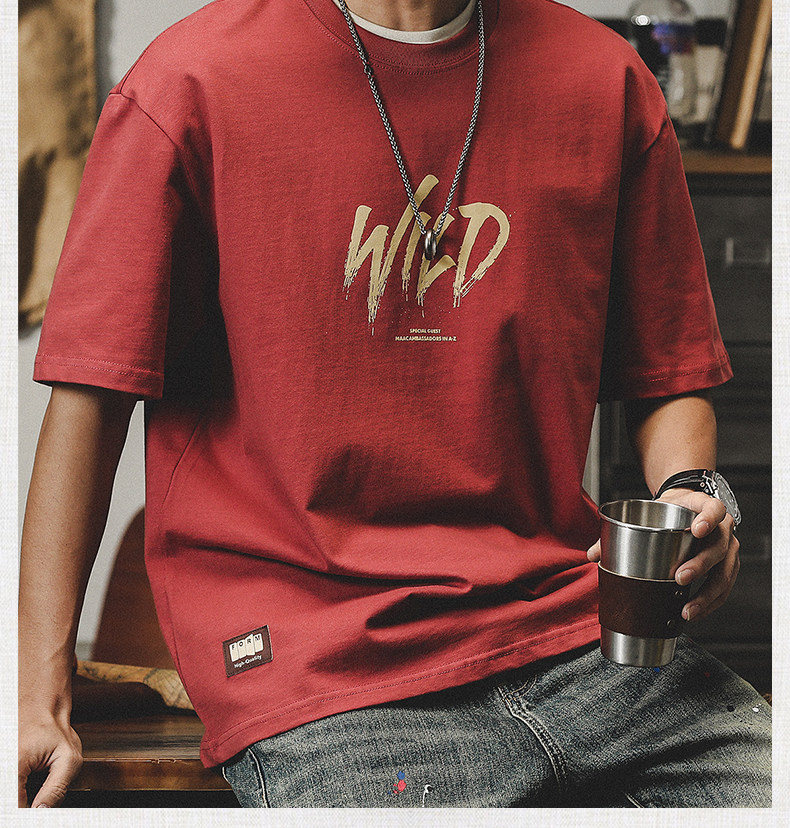 杰雷诺 Трендовая красная летняя футболка с коротким рукавом, в американском стиле, ручная роспись