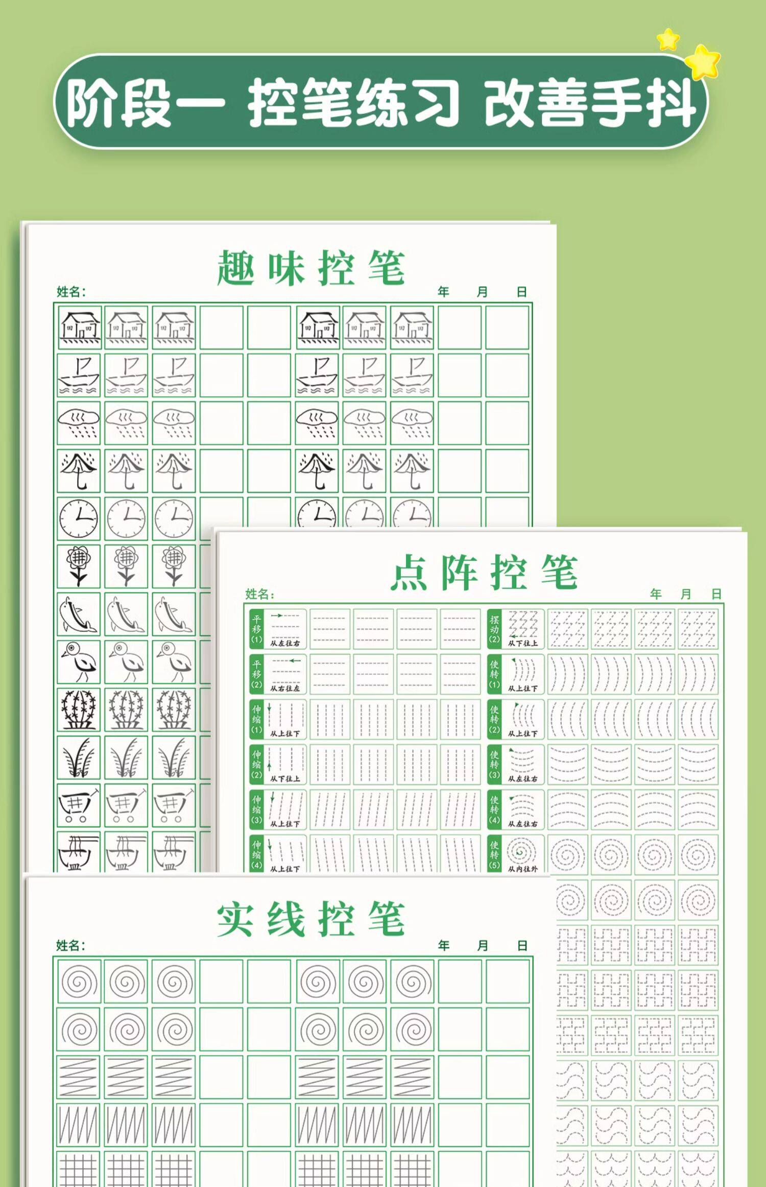 - 3 упражнения по управлению ручкой (точечная матрица + забава + управление ручкой по сплошной линии) [в комплект входит держатель для ручки + карандаш]