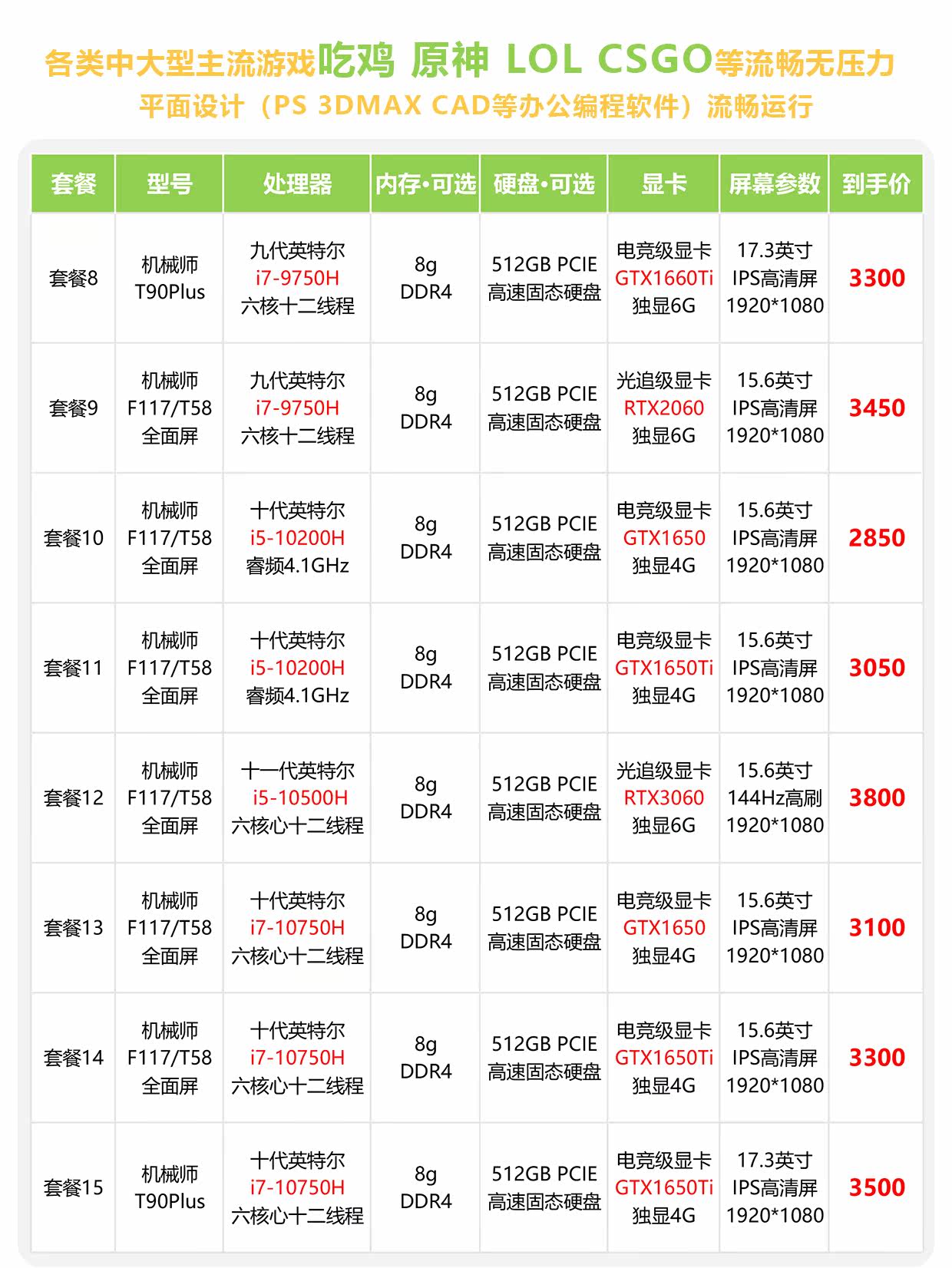 Механик T58 T58-V Game Ben F117 Легкая книга электронных видов спорта T90 Студенческий офис 3060 Независимый дисплей