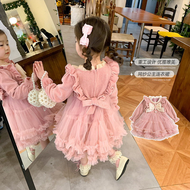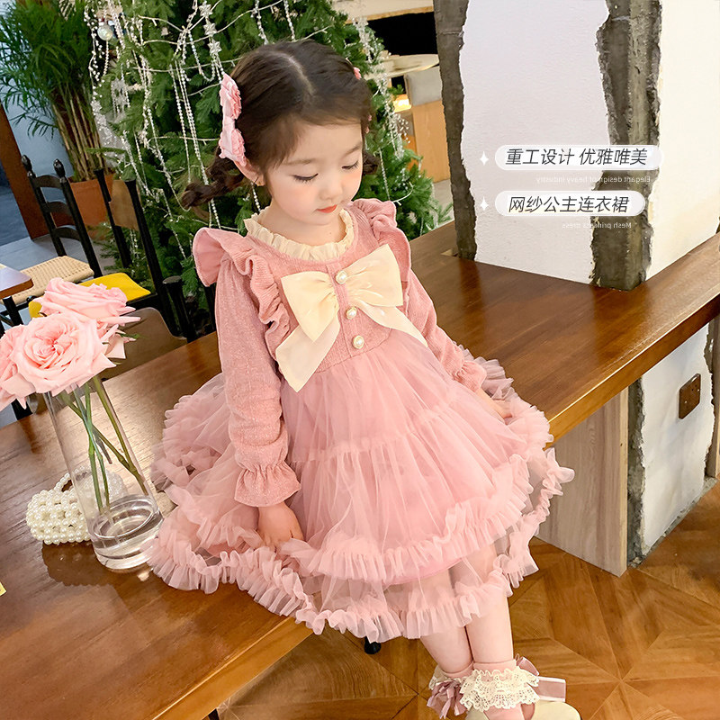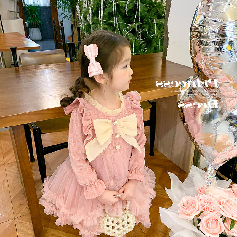 Демисезонный наряд маленькой принцессы, милое платье с бантиком, юбка на девочку, стиль Лолита, юбка-пачка, в корейском стиле