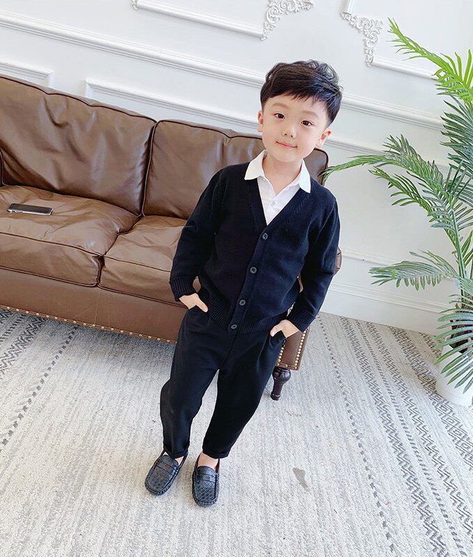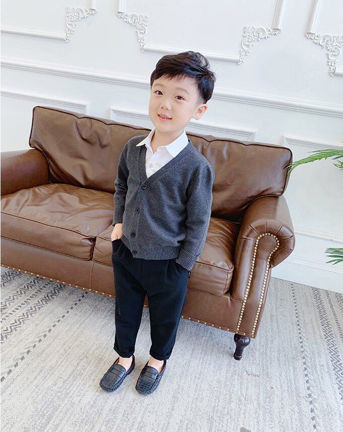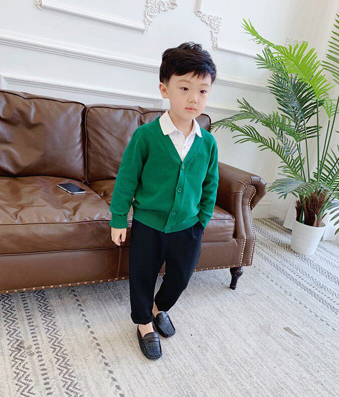 Хлопковый трикотажный корейский кардиган, детская одежда, V-образный вырез
