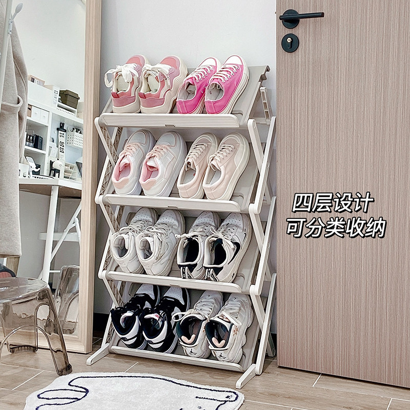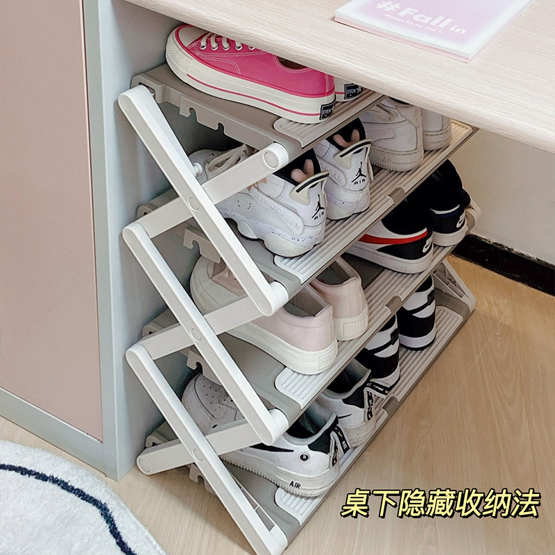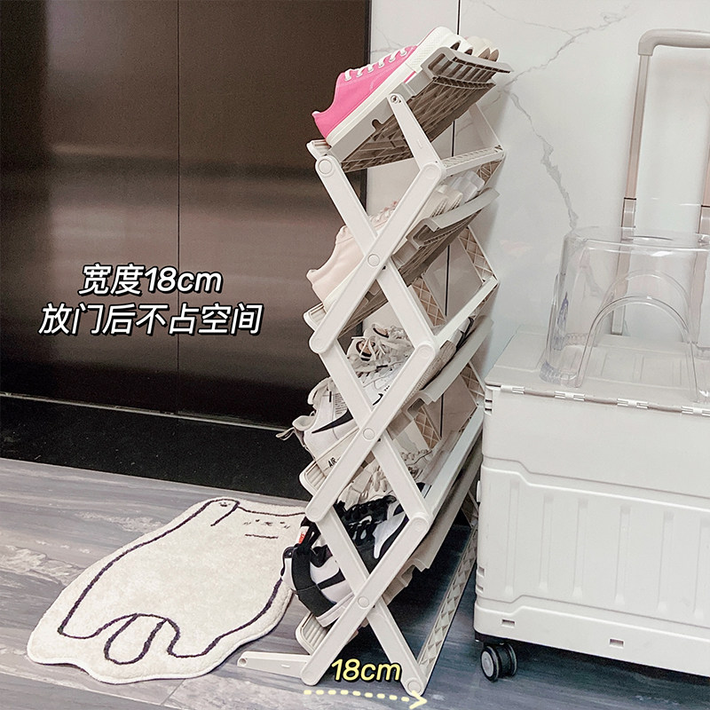 Складную полку для обуви можно использовать, как только вы ее потянете. Небольшой многослойный, не требующий установки, простой шкаф для обуви под столом в общежитии с узким зазором у двери вашего дома.