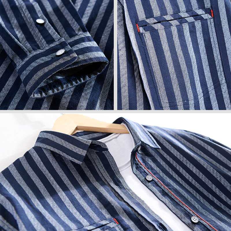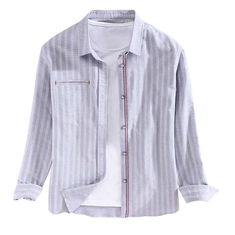 Мужские повседневные вертикальные полосатые рубашки с длинной рукавом тонкая полоса