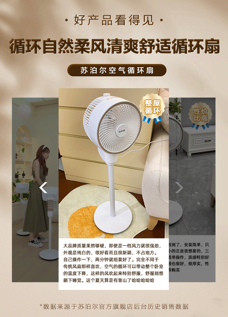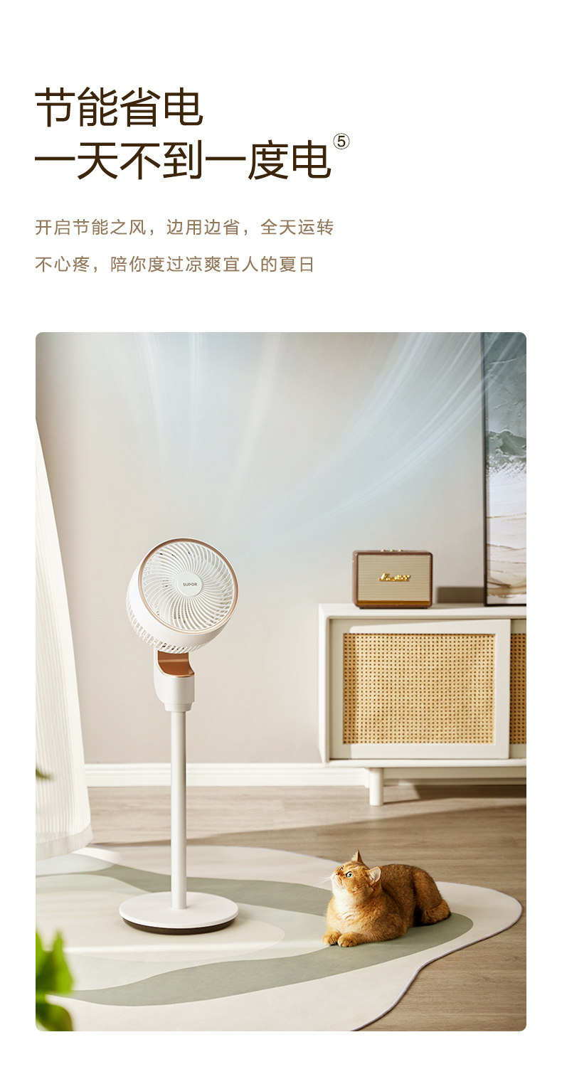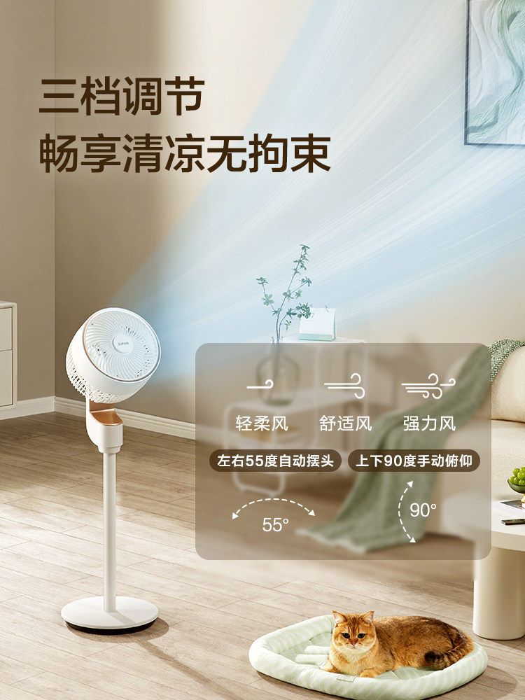 Вентилятор Supor Electric Vomeving Мощный вентилятор Light Sound вентилятор Dafeng Air Circular вентилятор встряхивает электрическим вентилятором
