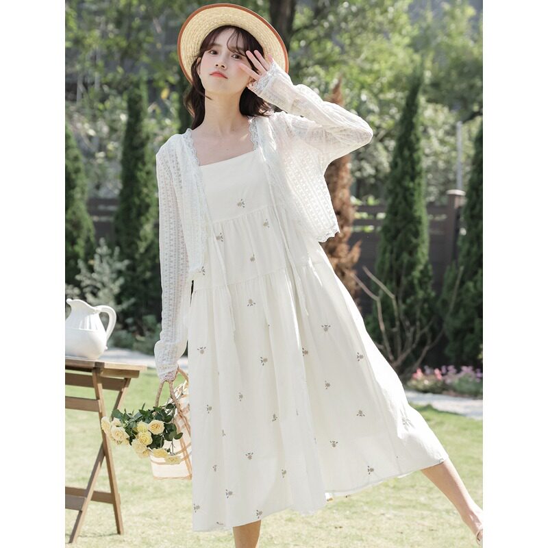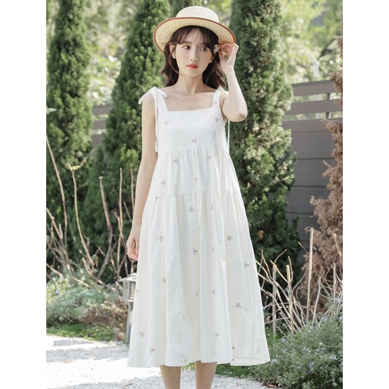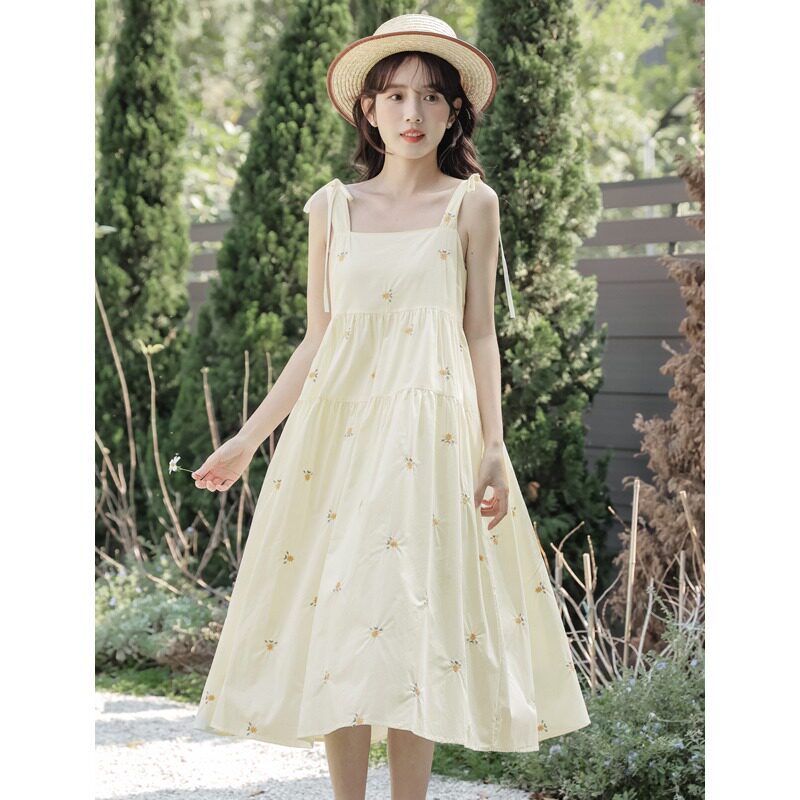 Платье, свежее модное милое летнее платье-комбинация, в цветочек, с вышивкой