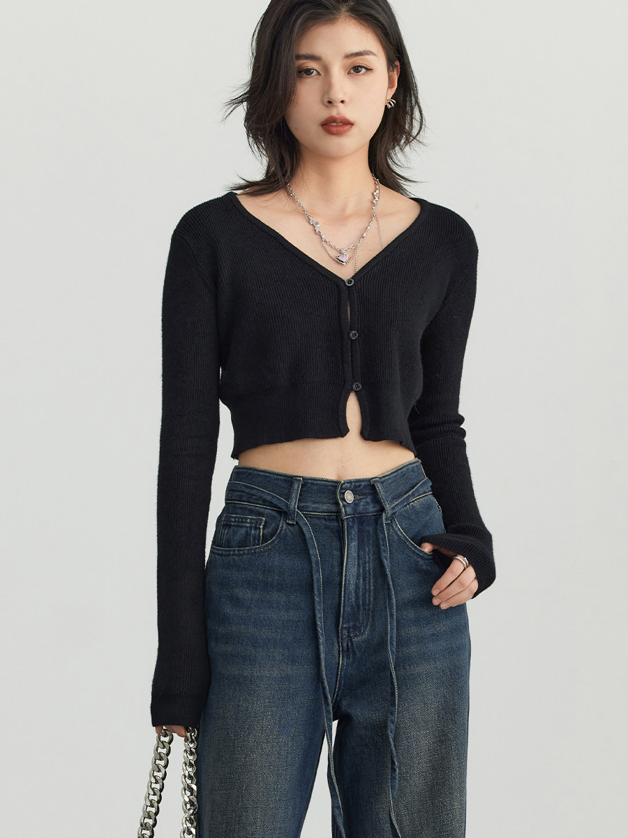 Весенний трикотажный кардиган, 2023, облегающий крой, V-образный вырез