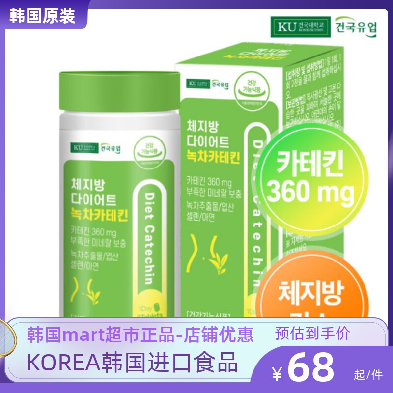 Южная Корея Диета Катехин Зеленый чай Таблетки Cateles Catey Catey Falistate Zinc Sleediid питание и восстановление уменьшает жир брюшной полости 60