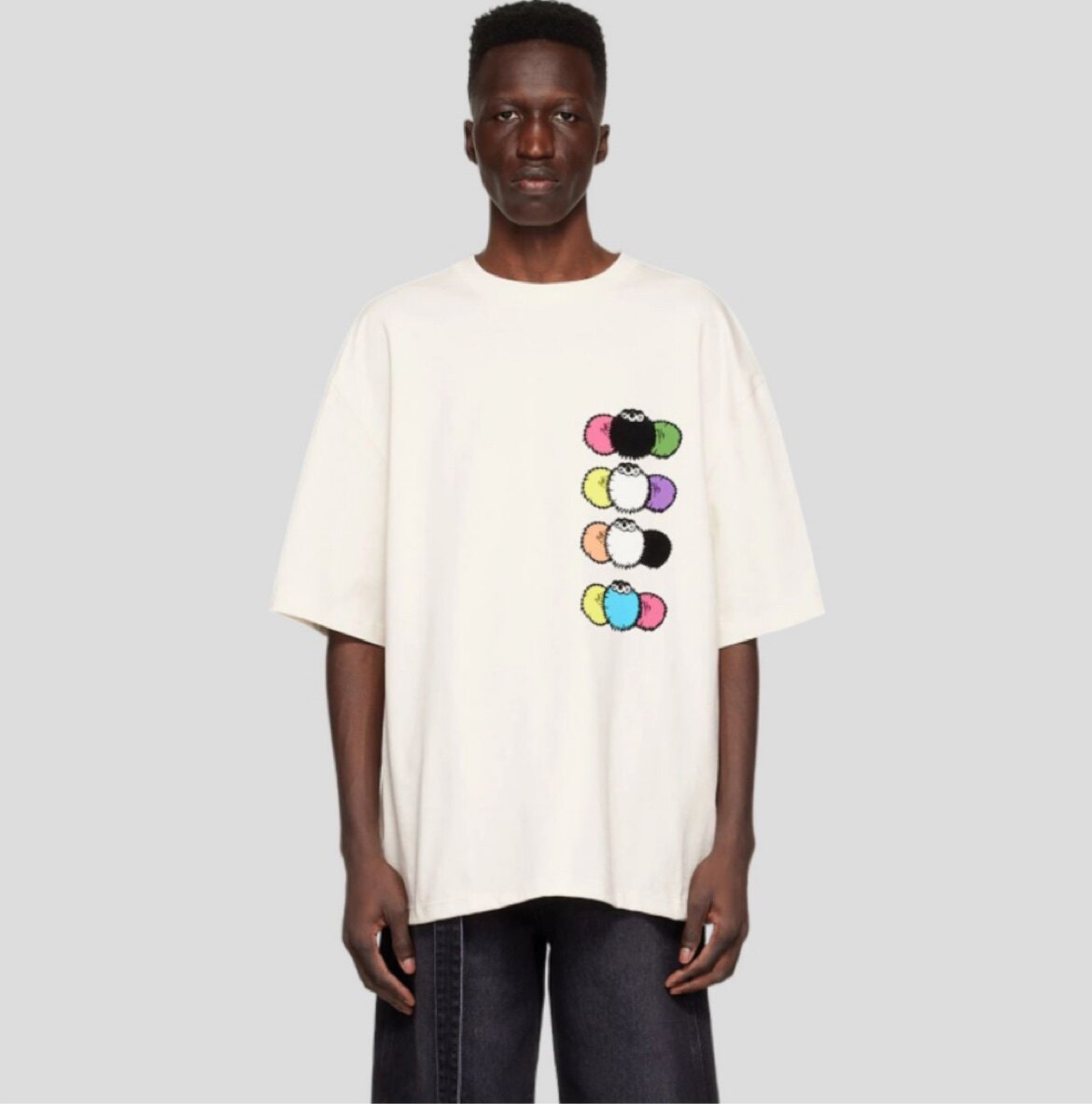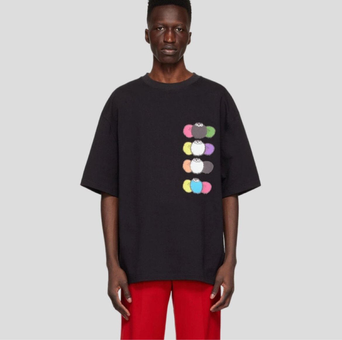 Скидка 50 %] We11done Track New Multi -Color Demon Coal Ball Print Men's Short -Sleeed T -Fork