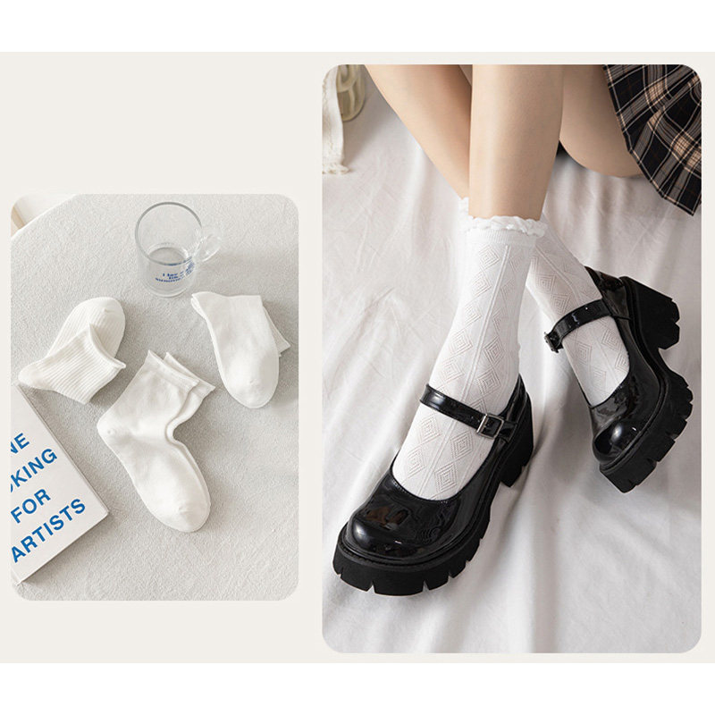 5 пары лолита носки сладкий стиль для женских девушек Женщины Принцесса весенняя осень белая милая милая кружевная короткая носка оборкания