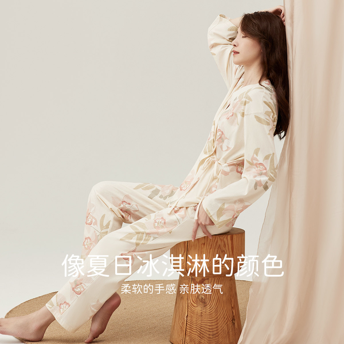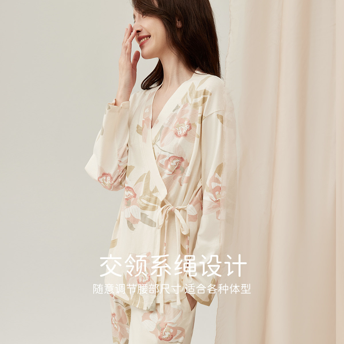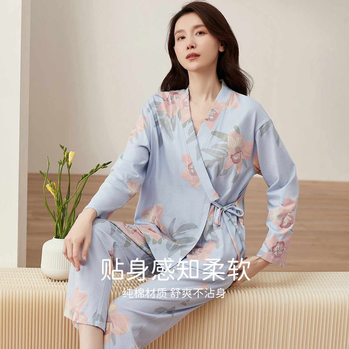 Японский банный халат, лонгслив, штаны, хлопковая пижама