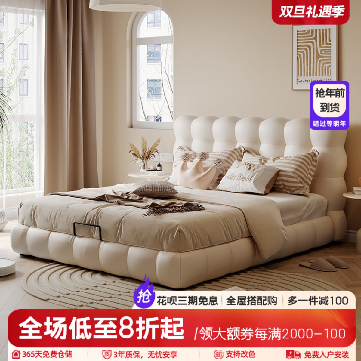 Главная спальня большая кровать высокая -поэтапная 2023 Новая современная минималистская кровать свадебная кровать кровать