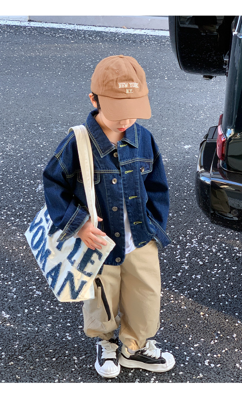 左西 Ретро летняя одежда, джинсовая детская демисезонная осенняя куртка, в корейском стиле, коллекция 2023, свободный крой