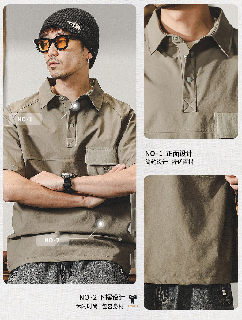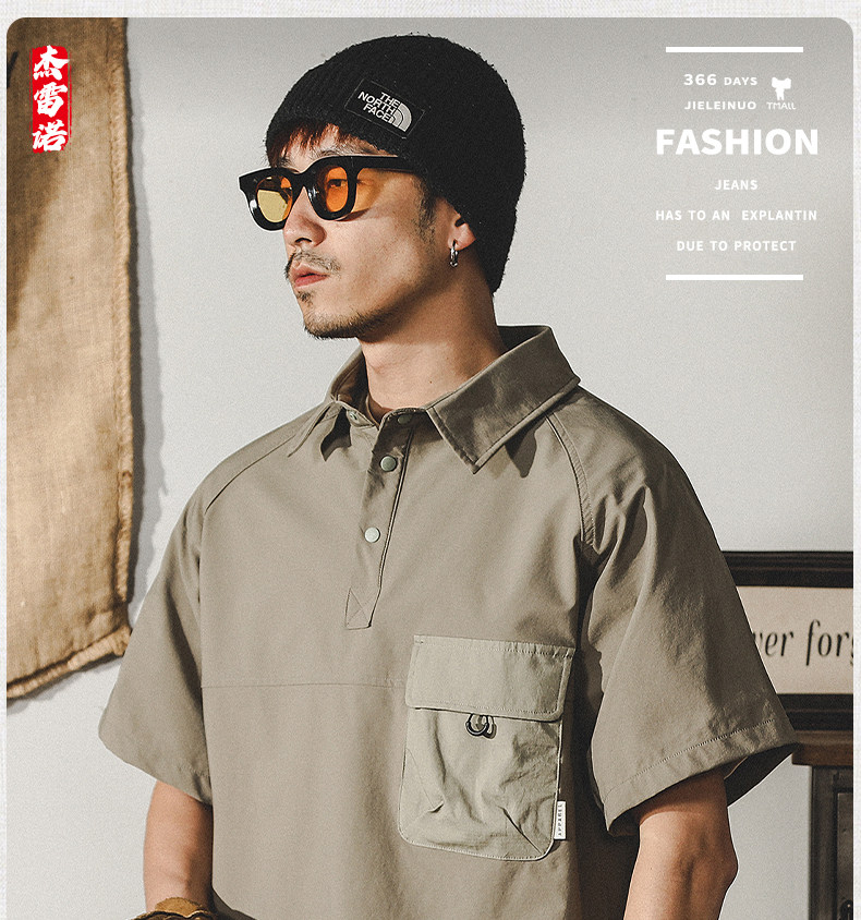 杰雷诺 Ретро летняя футболка с коротким рукавом, рубашка, футболка polo, в американском стиле, свободный крой, высокий воротник
