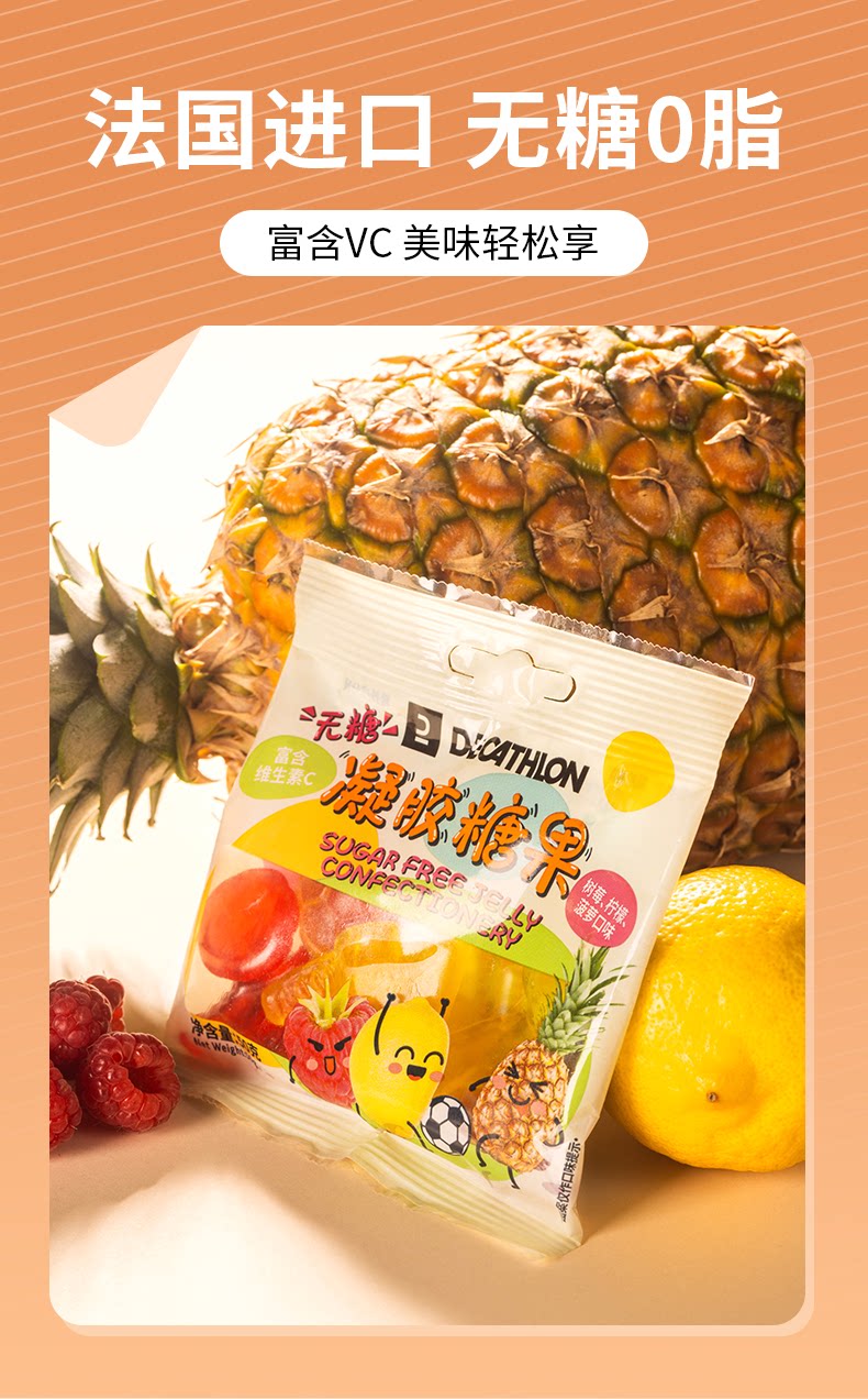Decathlon Гелевые жевательные конфеты с витамином C Без сахара 0 Сахар 0 жиров Заменитель еды Тренировки и отдых 𫔮Закуски Фитнес-тренировки END1