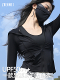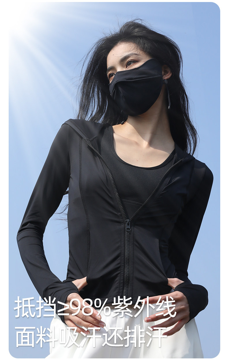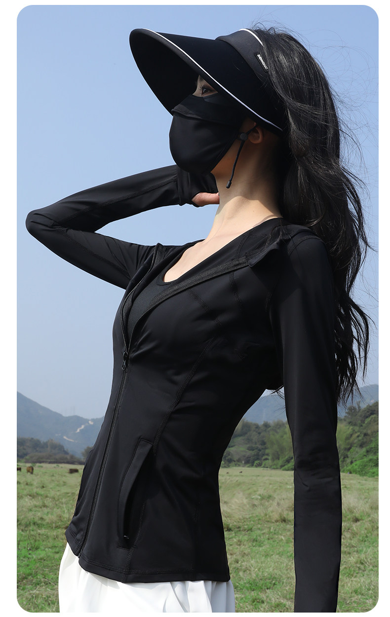 Одежда для защиты от солнца, приталенный корсет, черный комплект, куртка, облегающий крой, в обтяжку, защита от ультрафиолета, защита от солнца