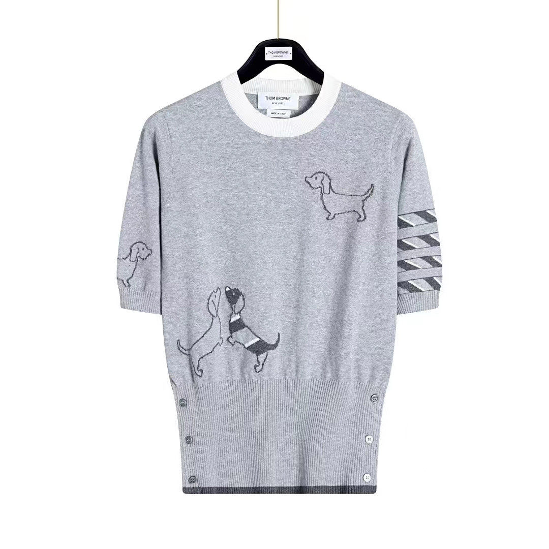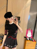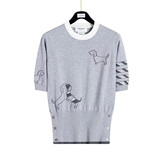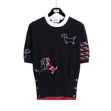 Японский летний трикотажный свитер с круглым воротником, с вышивкой