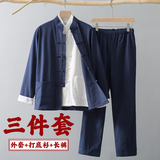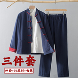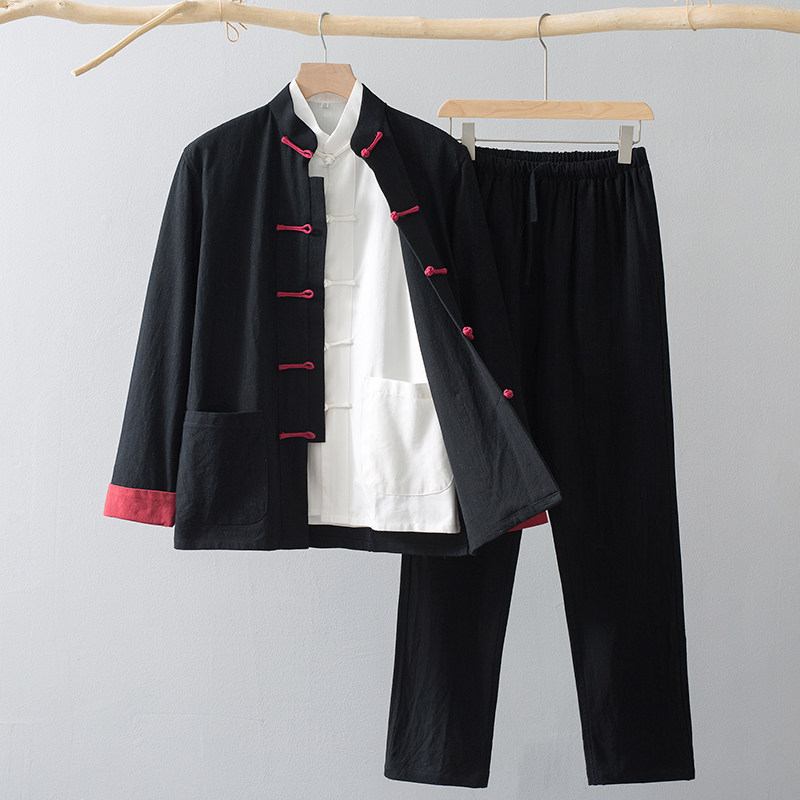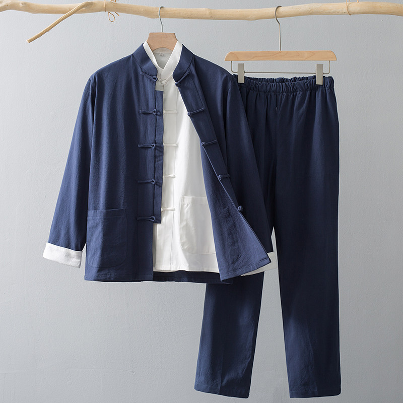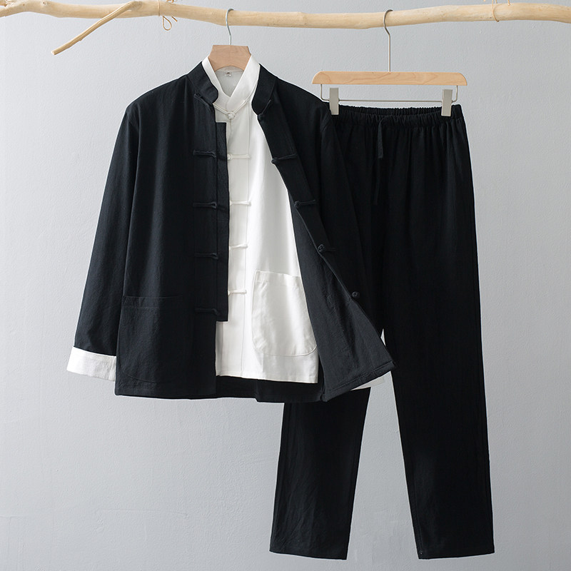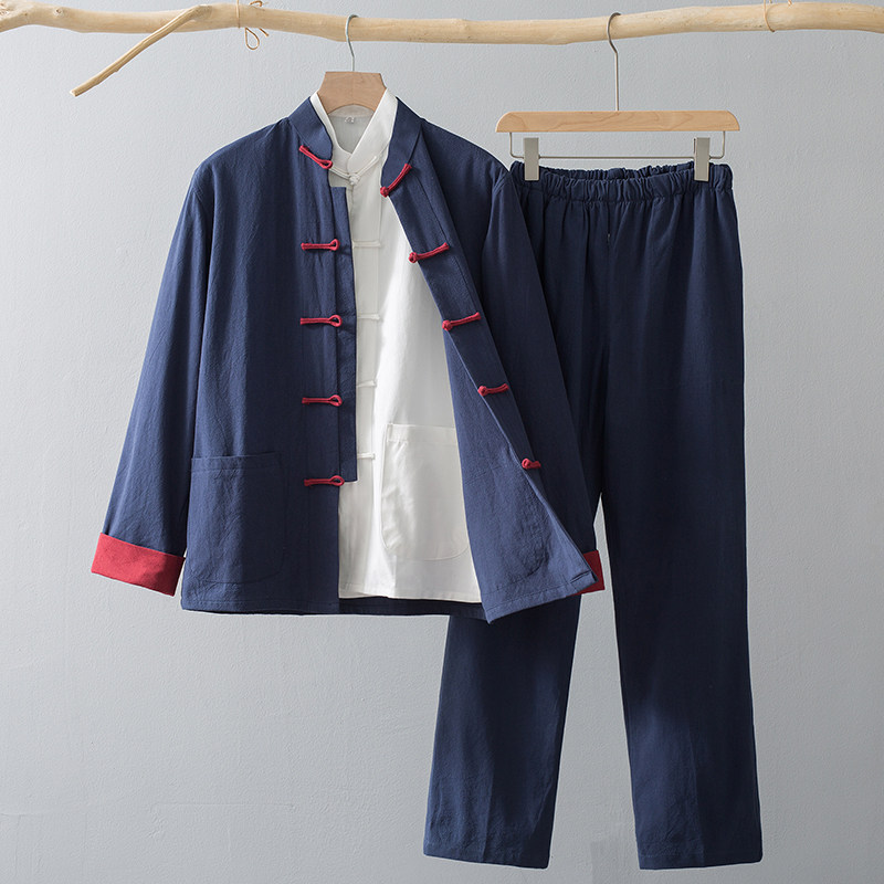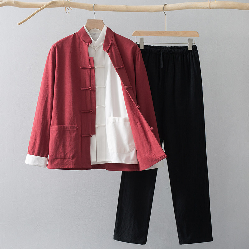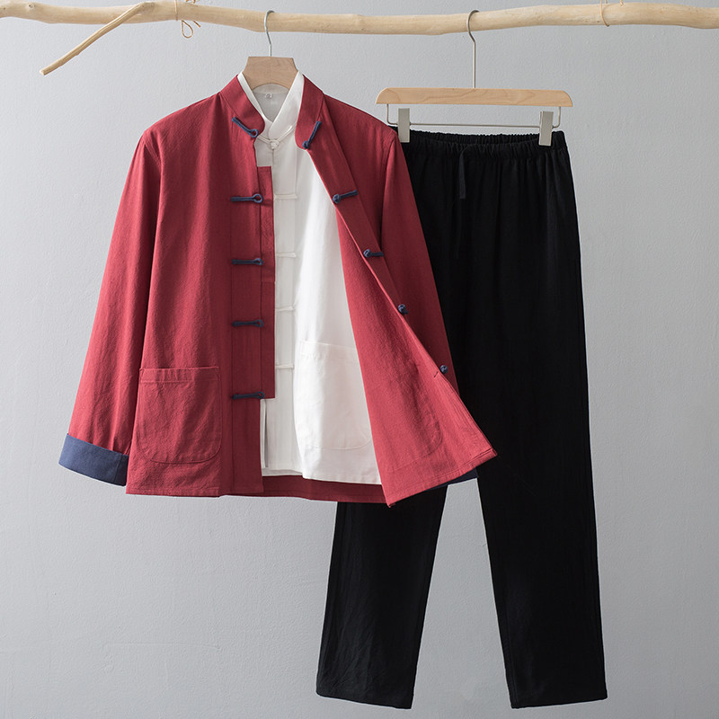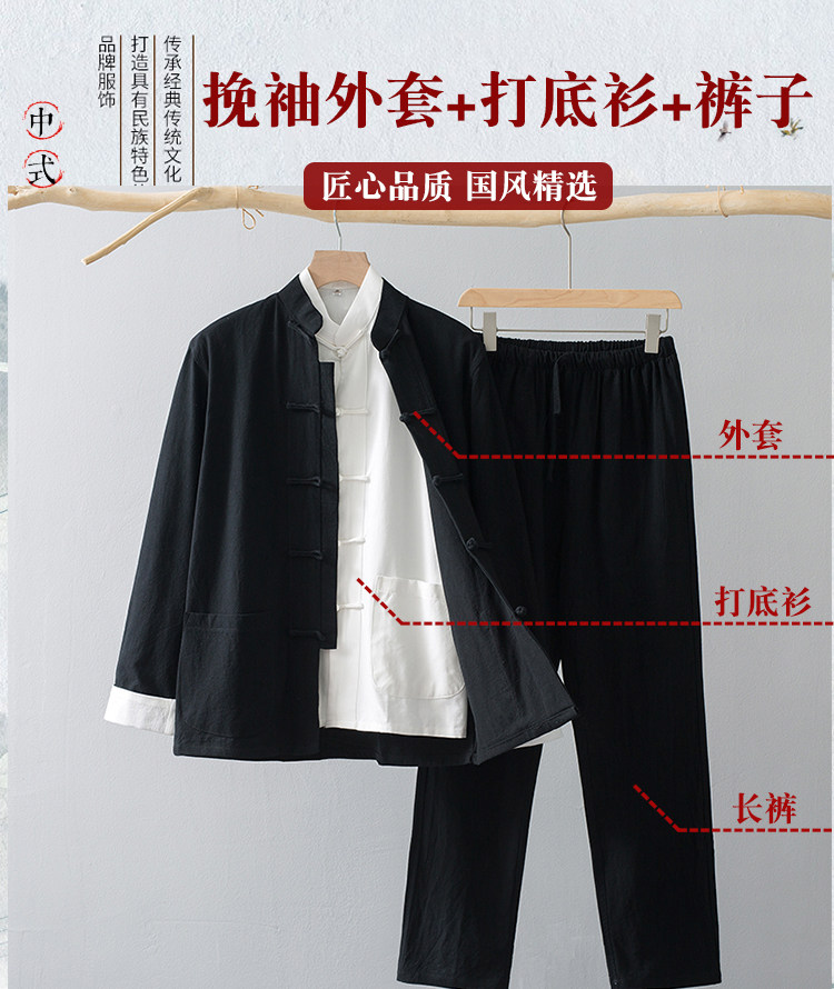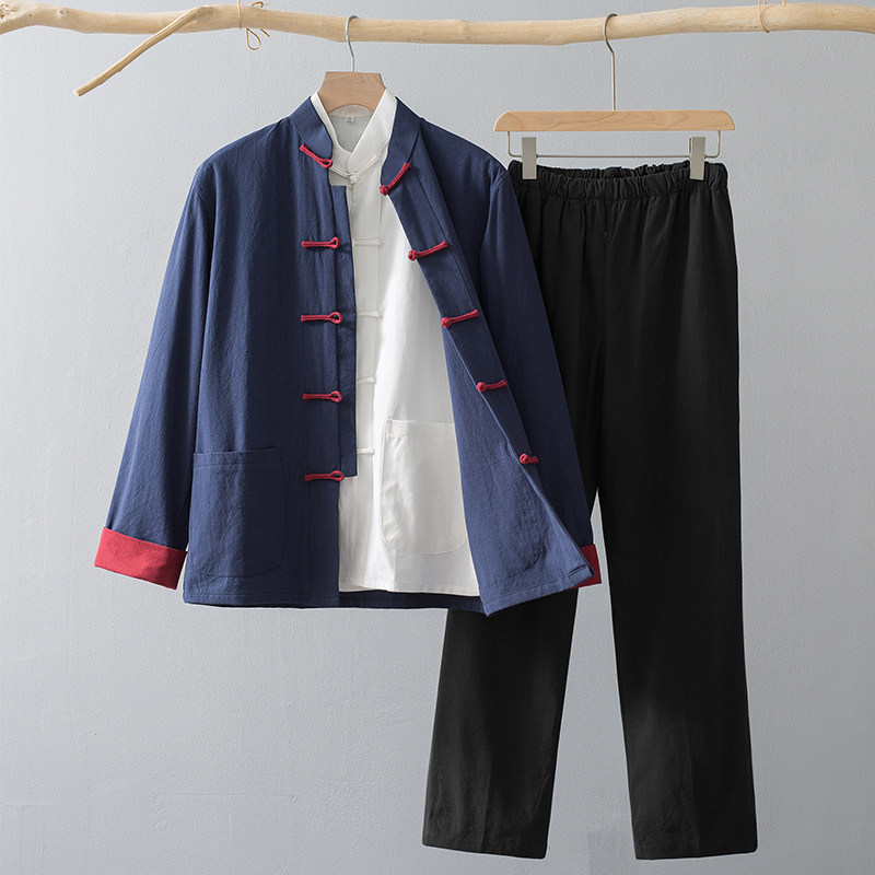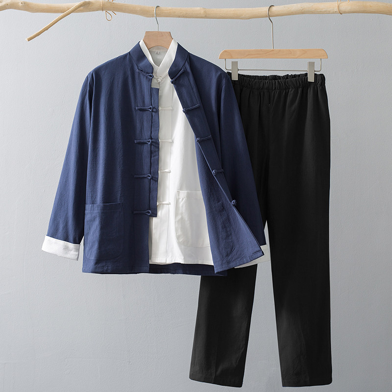 Лонгслив, осенние нарукавники, ретро комплект, куртка для пожилых людей, ханьфу, мужской стиль, китайский стиль, для среднего возраста