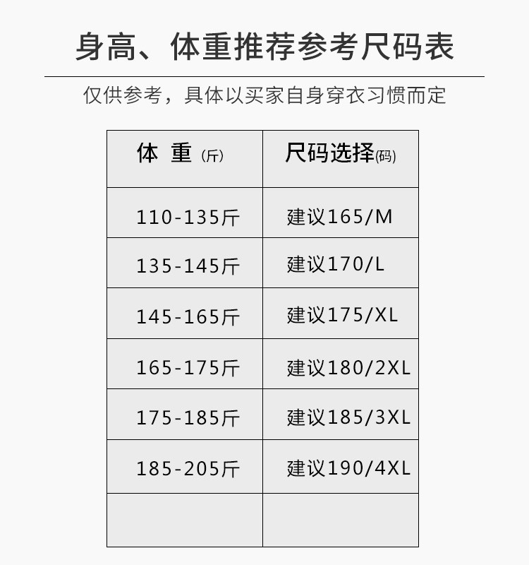 | Размер: | 165/M 110-130 Catties, 170/л 130-150 Catties, 175/XL 150-165 Catties, 180/2xl 165-170 Catties, 185/3xl 170-185 Catties, 190/4xl 185-205 Catties |