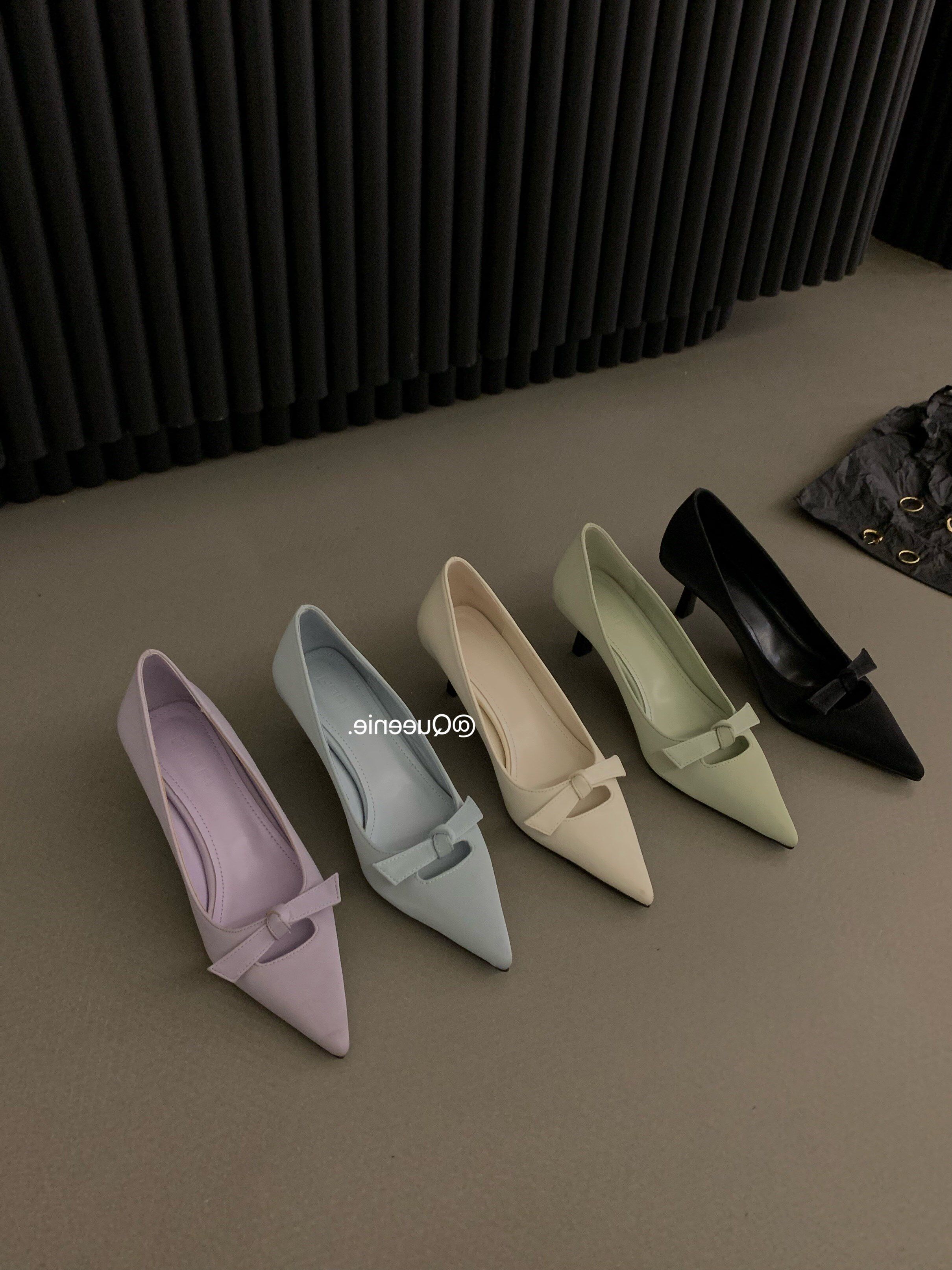 Туфли на высоком каблуке с заостренным носом с низким вырезом с бантиком, французский стиль