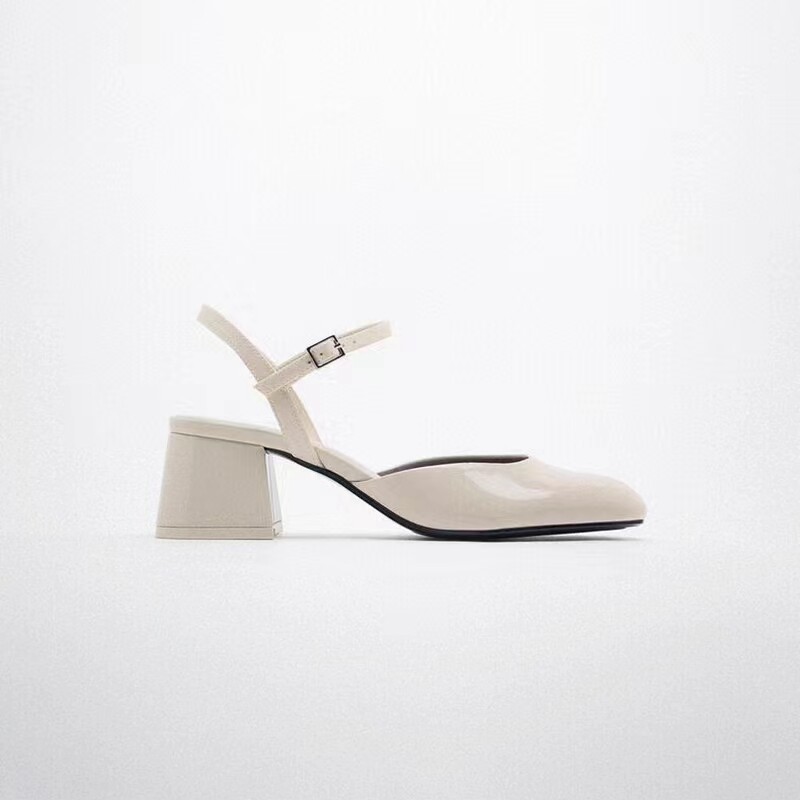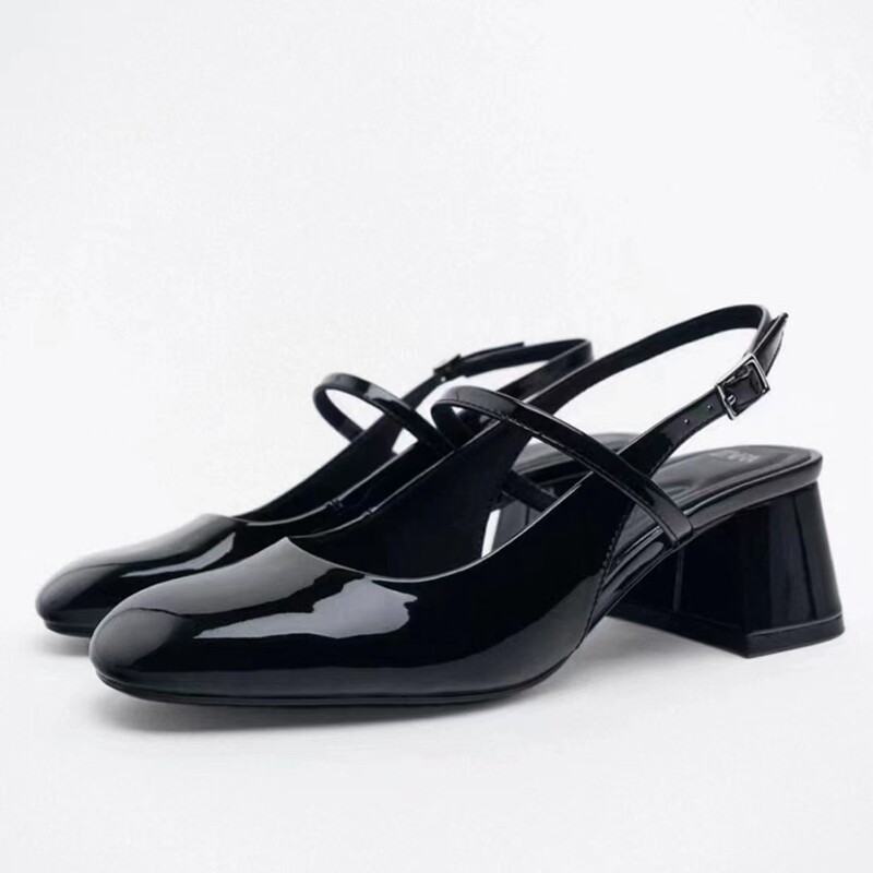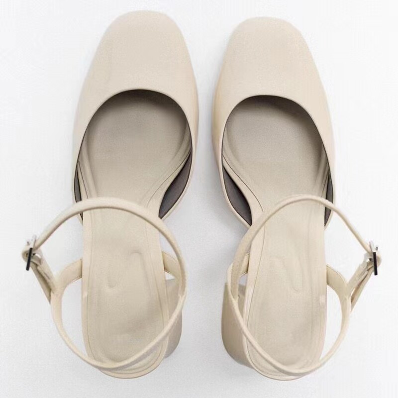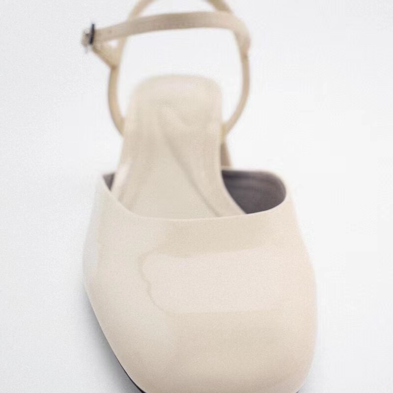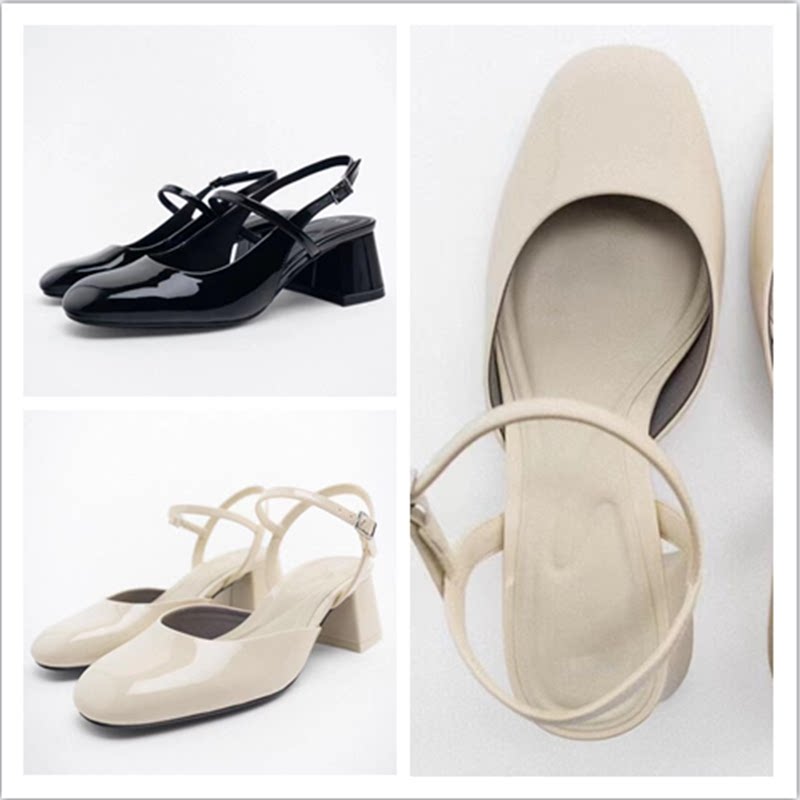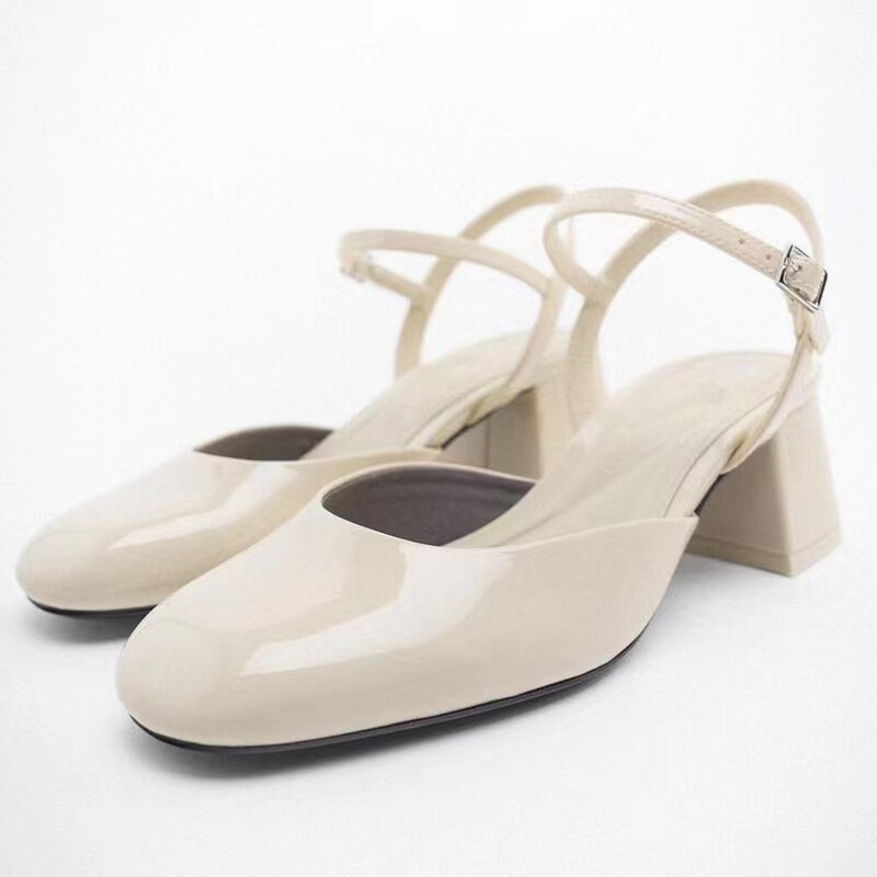 Испанский 2023 Весна и лето новая батоу женская обувь легкая бежевая патентная кожаная кожа толстая каблука Марижэнь обувь балетные туфли
