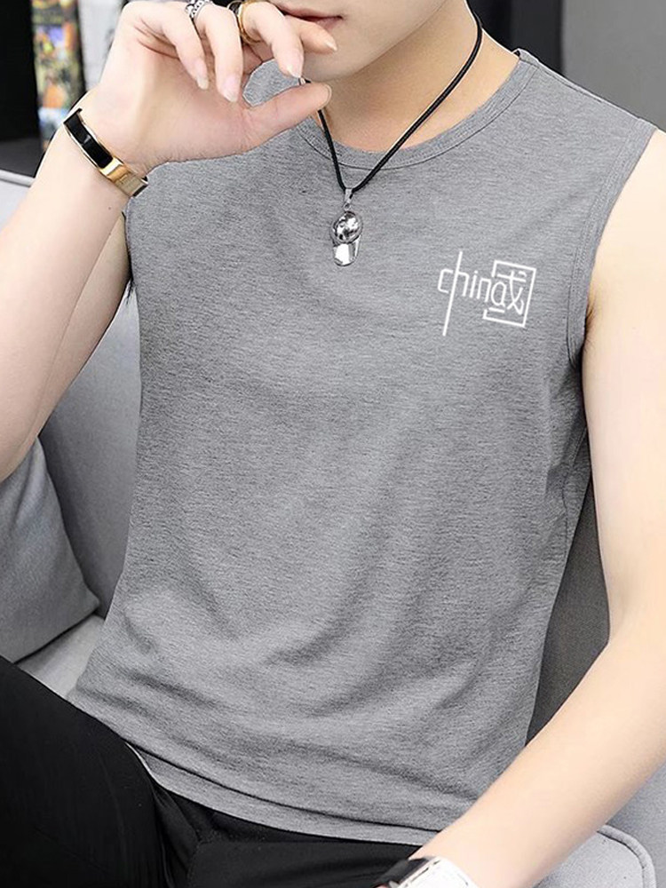 Жилет, мужская летняя тонкая спортивная цветная шелковая футболка для спортзала без рукавов, оверсайз