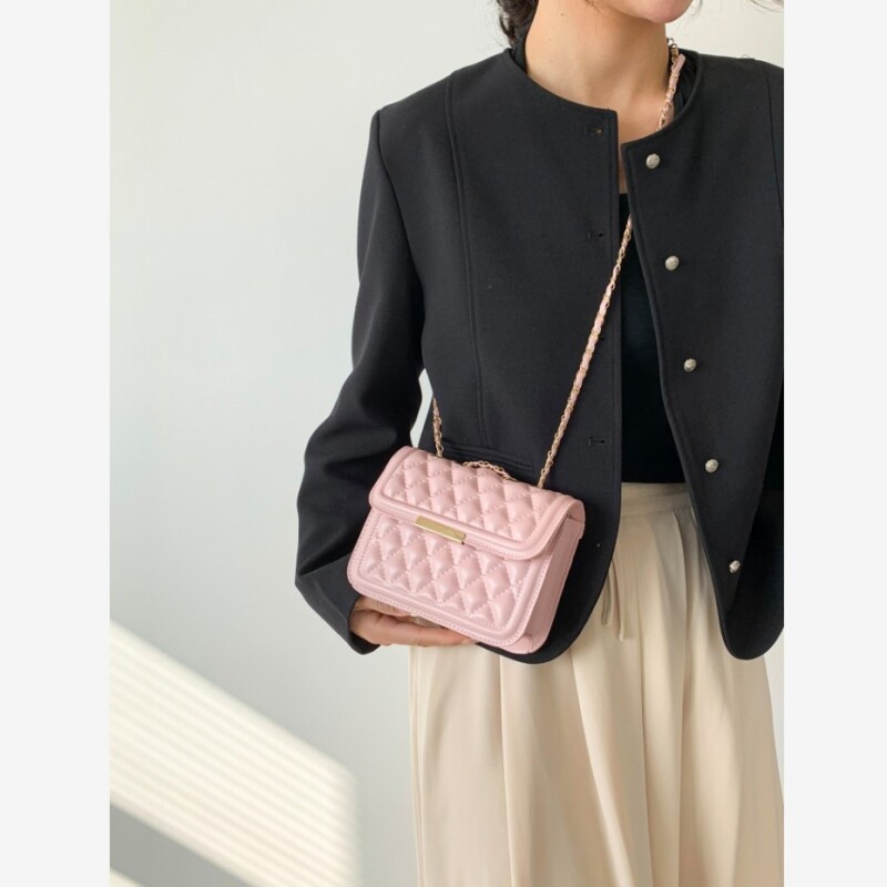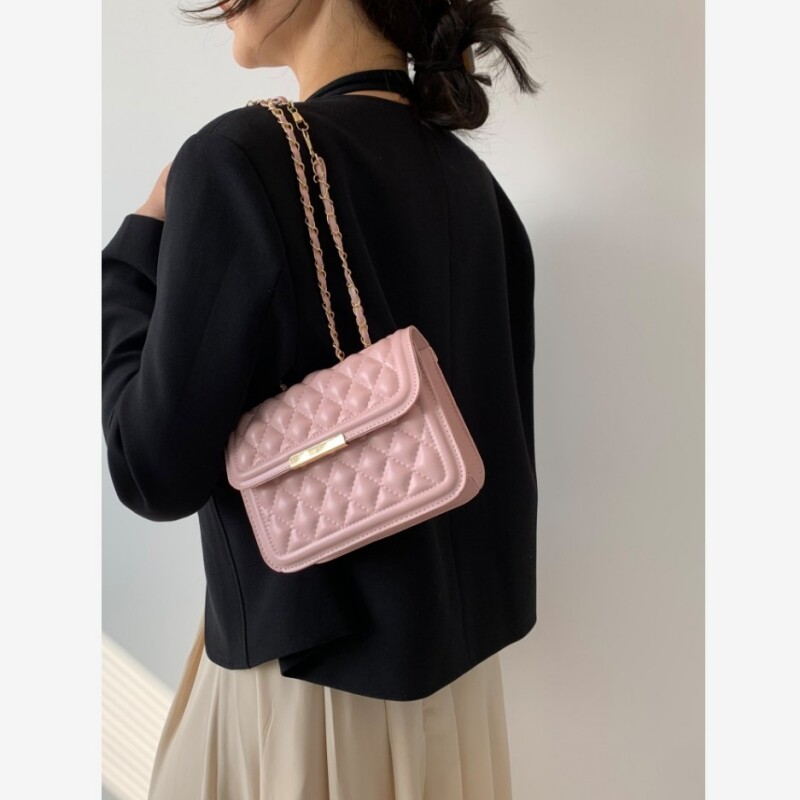 Розовая цепь с ромбовидным узором, сумка на одно плечо, на цепочке, широкая цветовая палитра, премиум класс