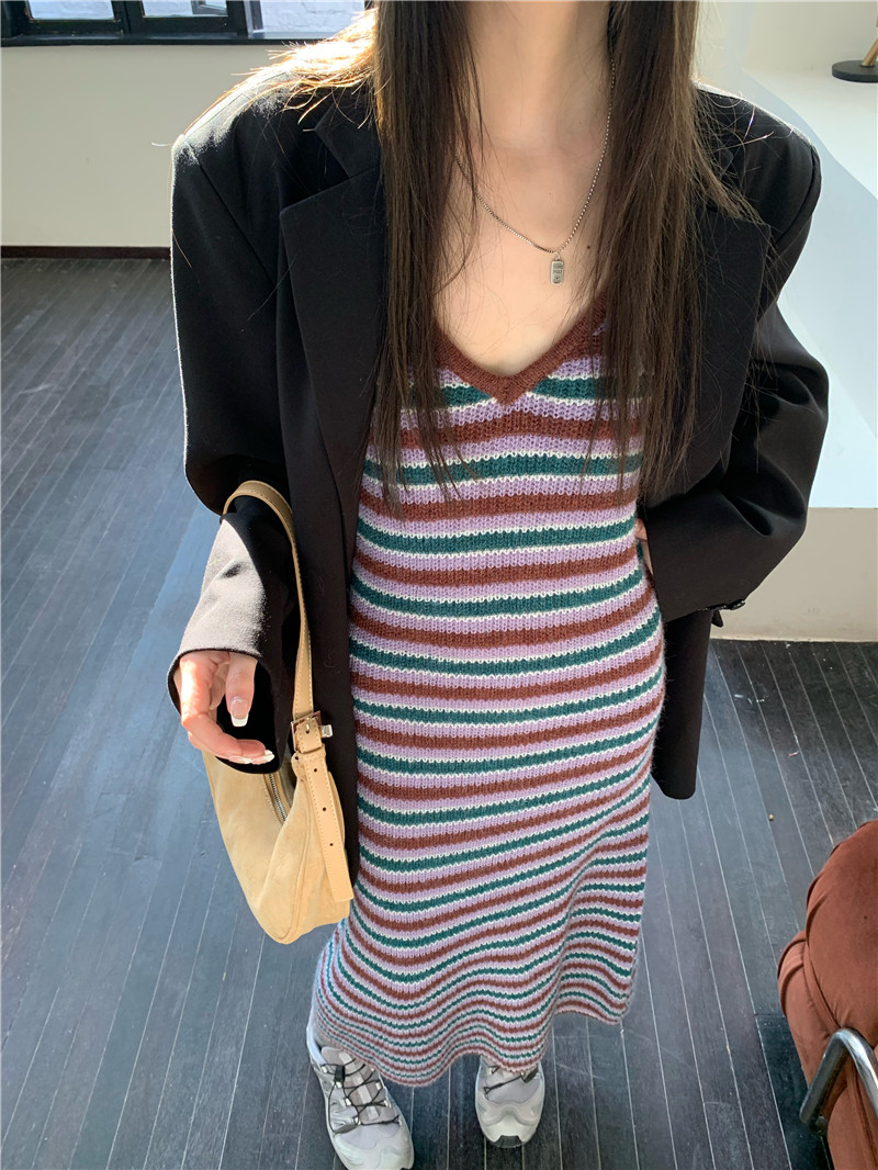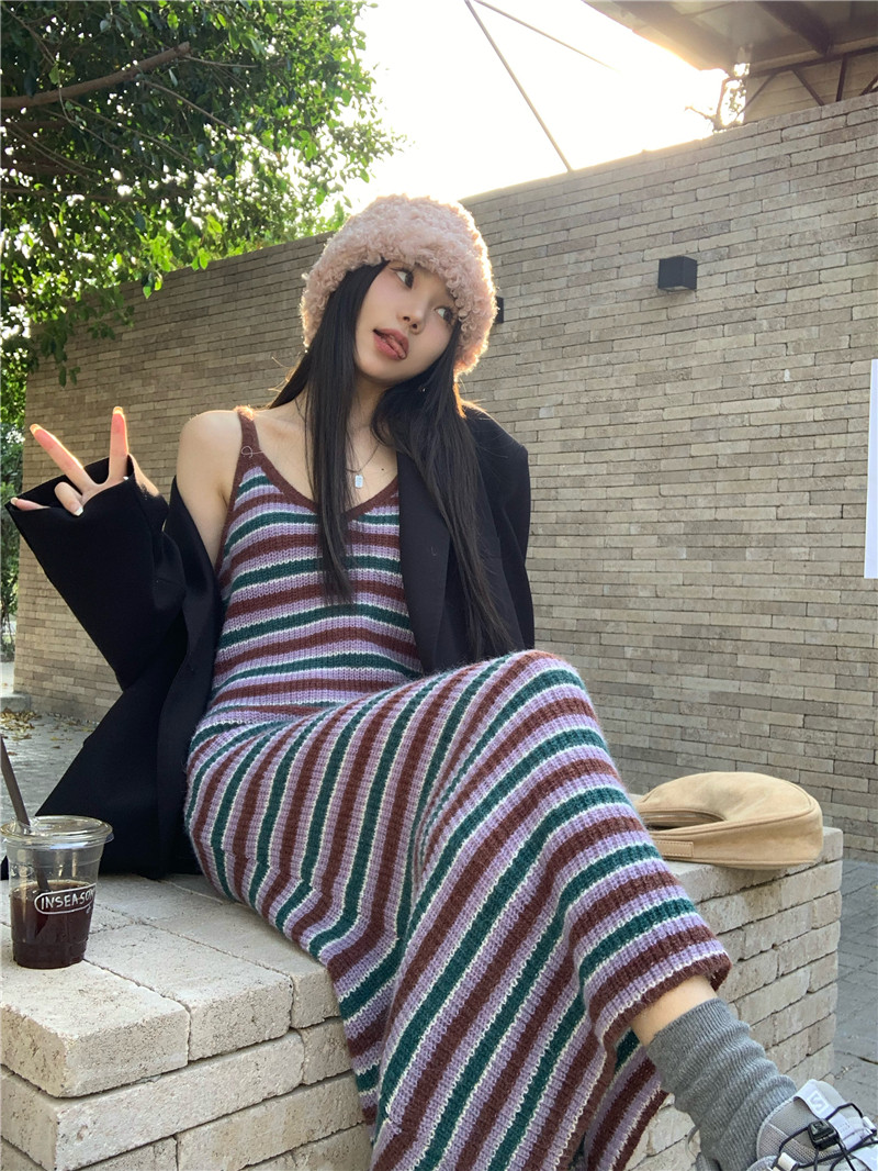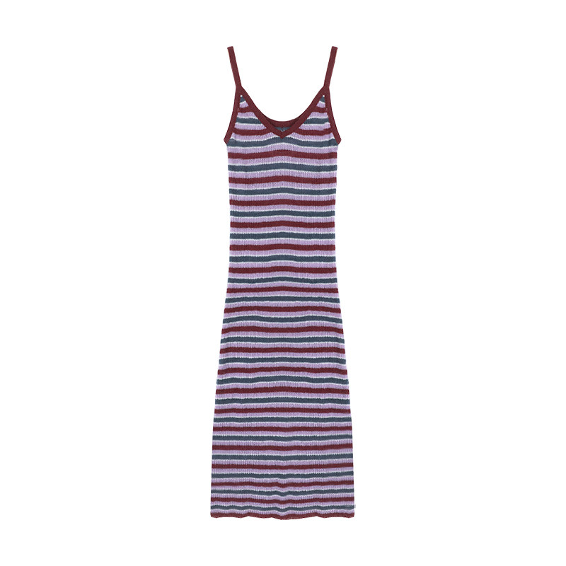 Tide, длинная юбка, ретро платье-комбинация, весеннее трикотажное платье, подходит для подростков, V-образный вырез