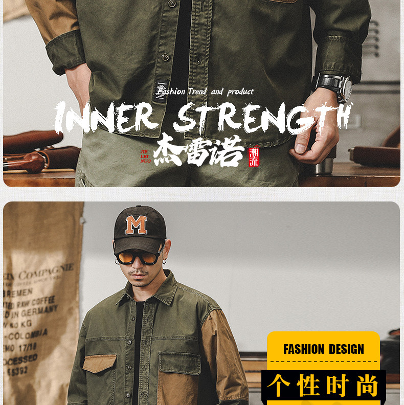 杰雷诺 Ретро осенняя рубашка, куртка, в американском стиле, оверсайз
