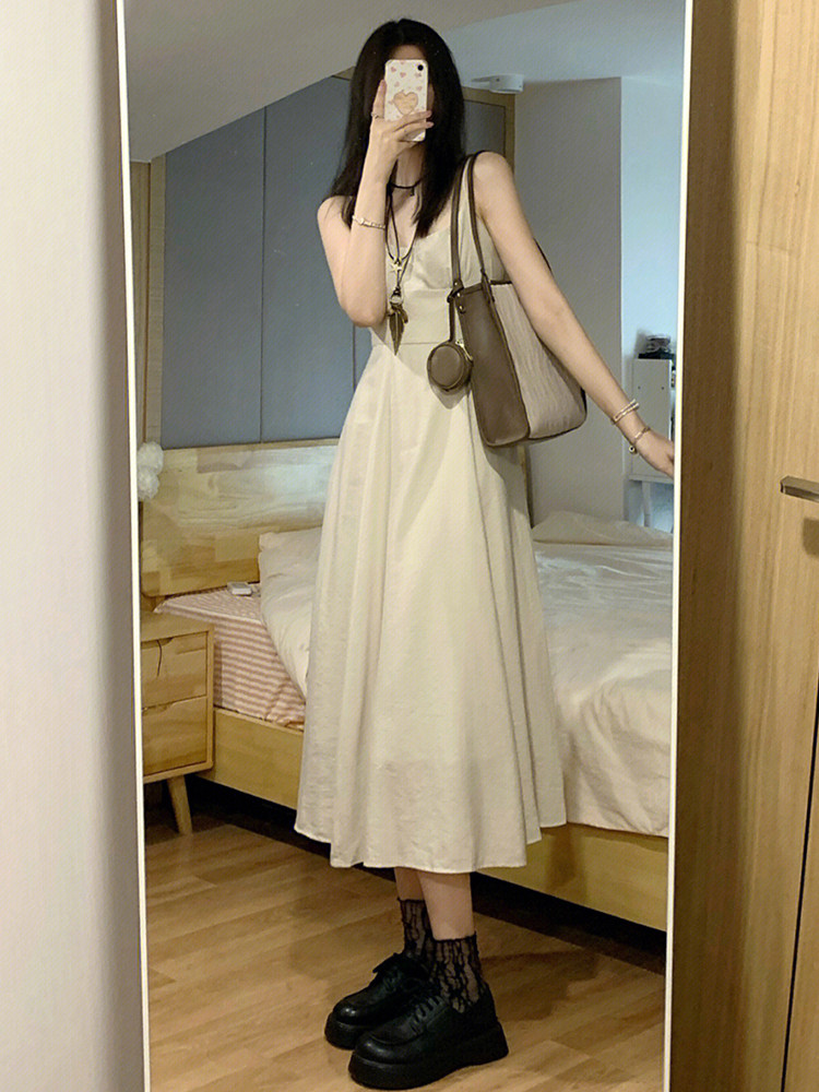 Летнее ретро абрикосовое платье, приталенный корсет, длинная юбка, изысканный стиль, коллекция 2023