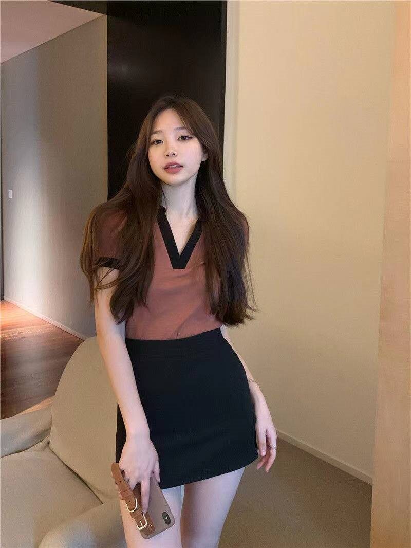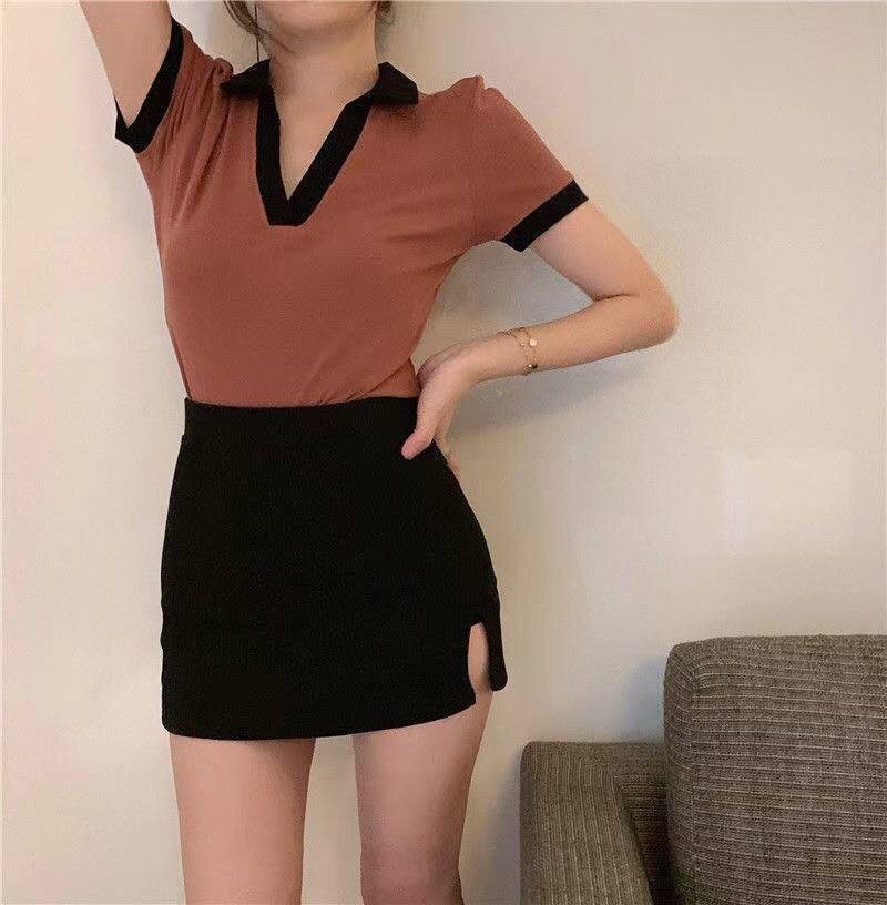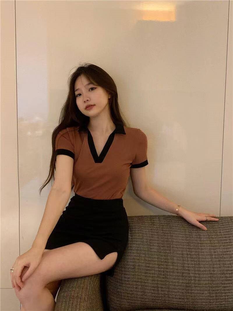 Летняя приталенная короткая футболка, воротник поло, подходит для подростков, высокий воротник