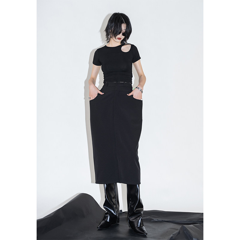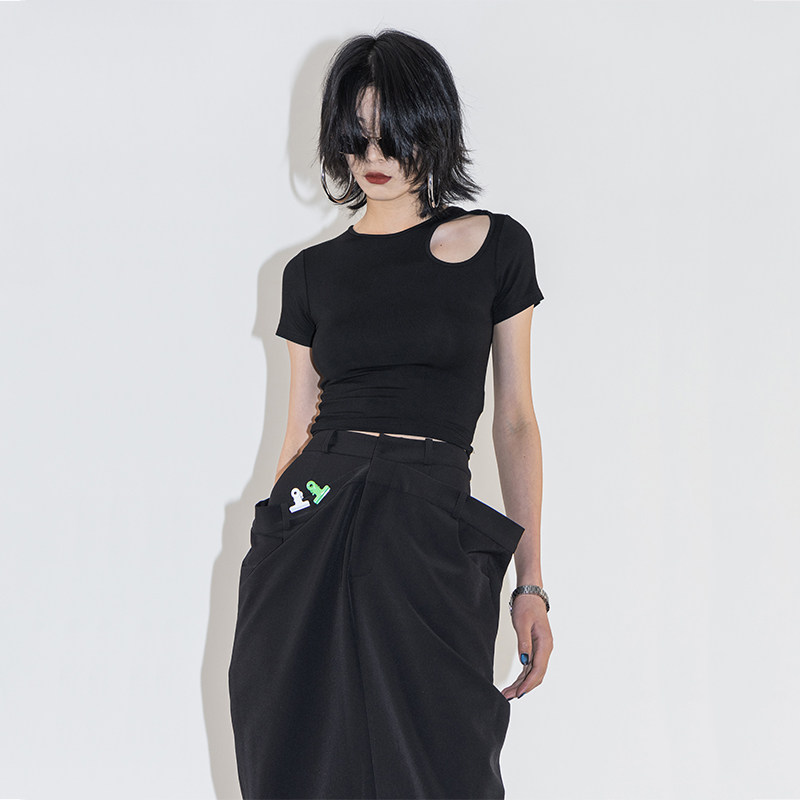 Черная короткая летняя футболка, облегающий крой, короткий рукав
