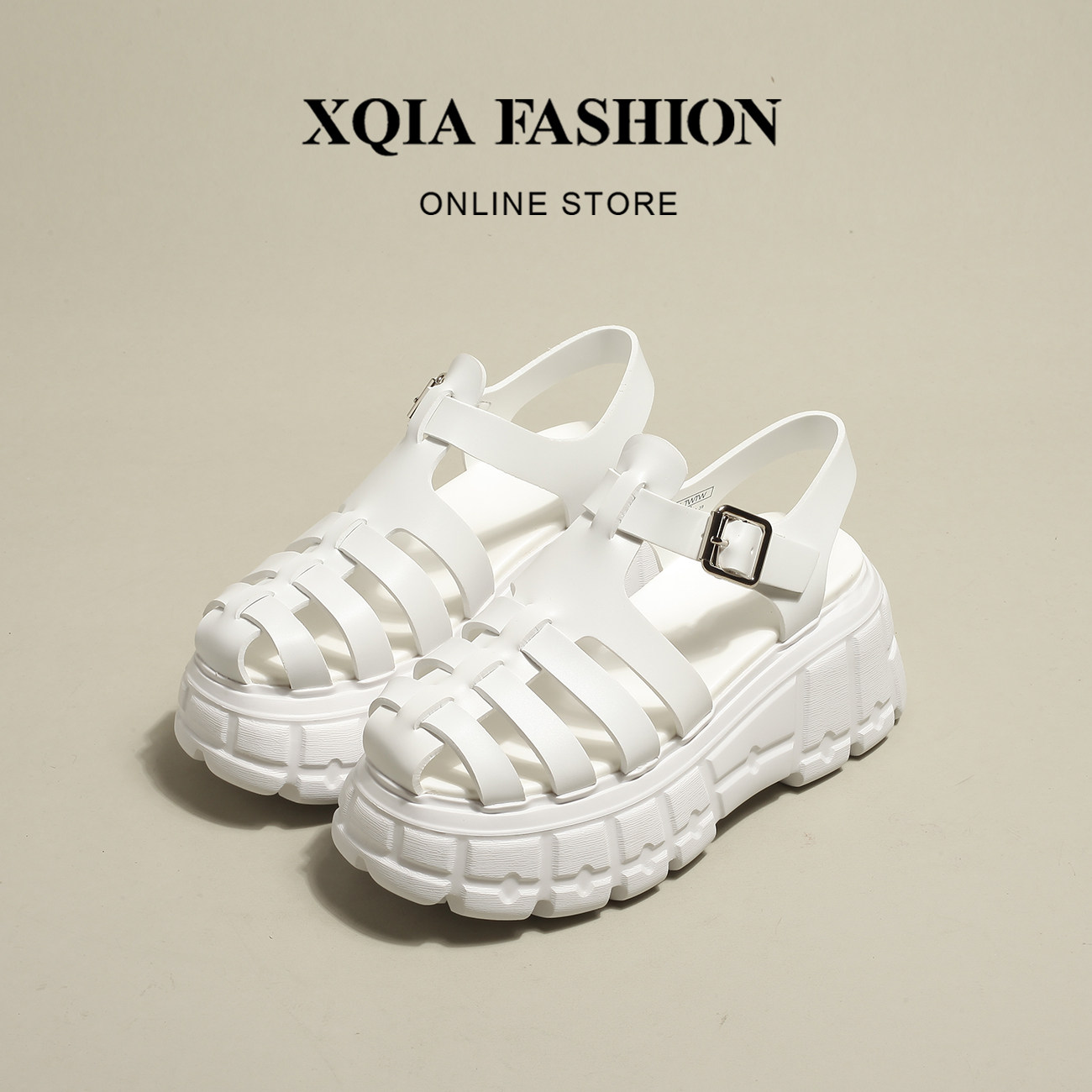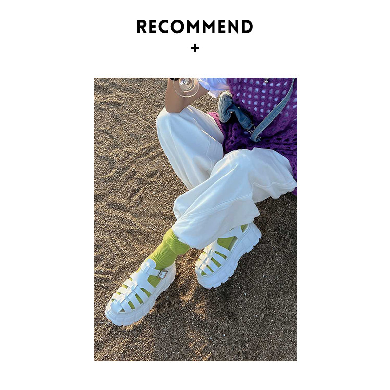 Xqia ~ прохладный и стильный ~ толстый дно свободный торт Baotou Sandals Женские летние полые полые повседневные свиньи Пещера Римские туфли