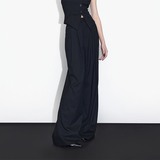 Двухцветный минималистичный костюм, весенние дизайнерские штаны, высокая талия, тренд сезона