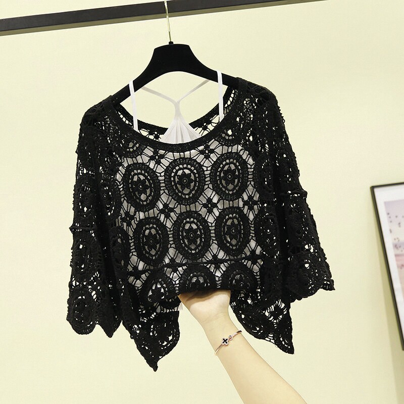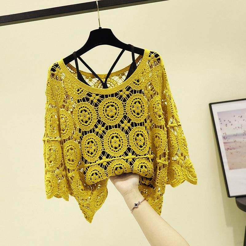 Летняя летняя одежда, кружевная юбка, базовый трикотажный свитер, в западном стиле, свободный крой