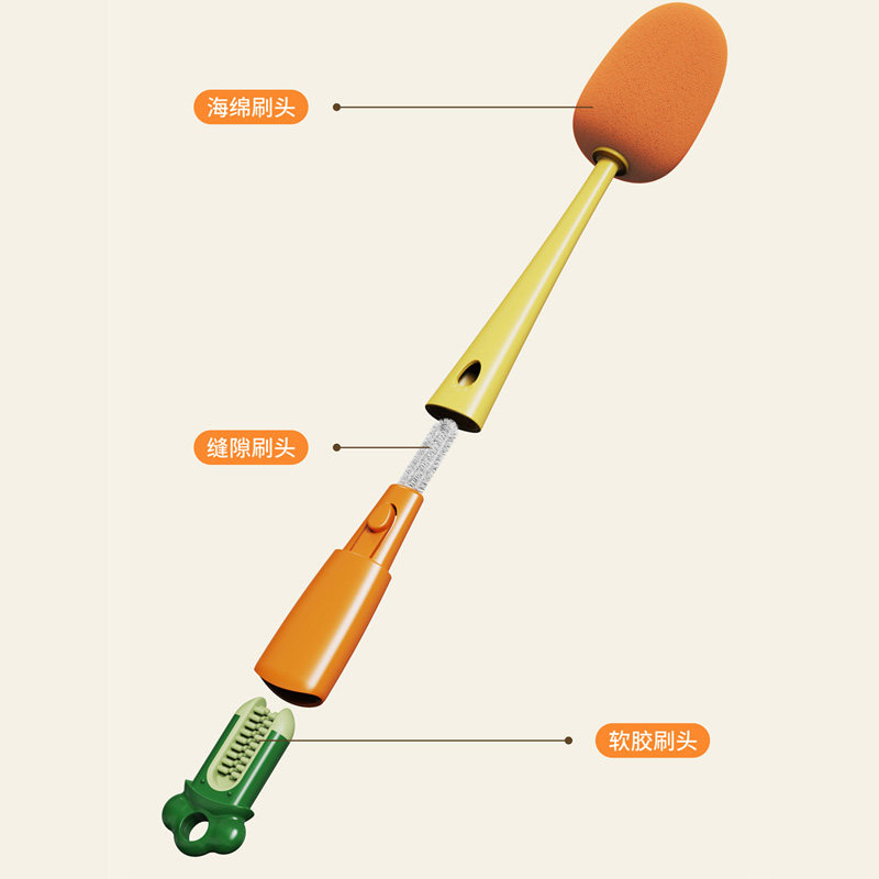 Гигиенический поролоновый ершик для бутылочки со стаканом, морковная щеточка, универсальная щетка, «три в одном»