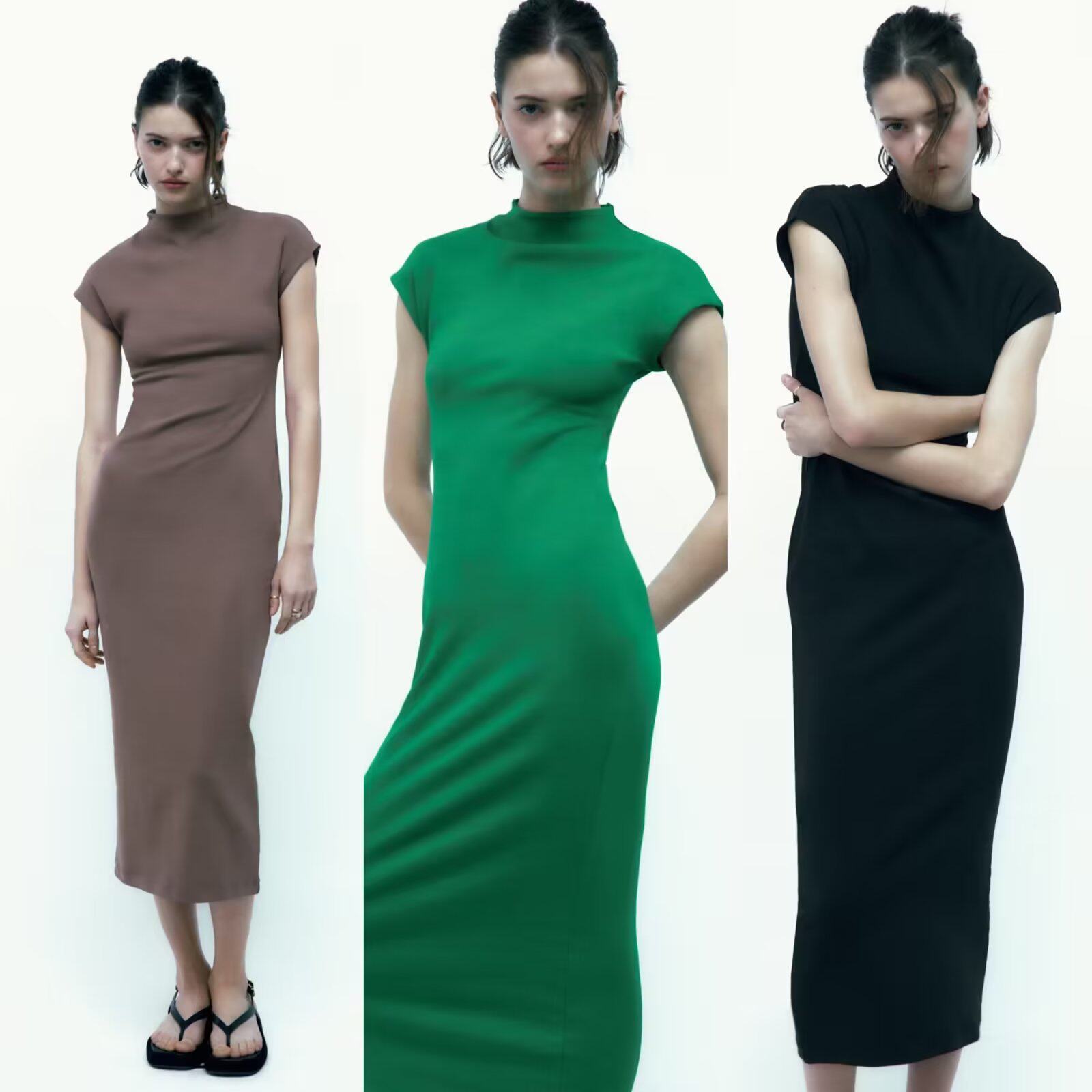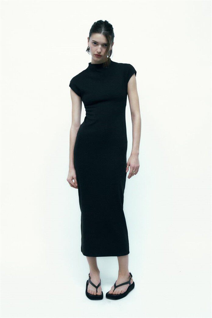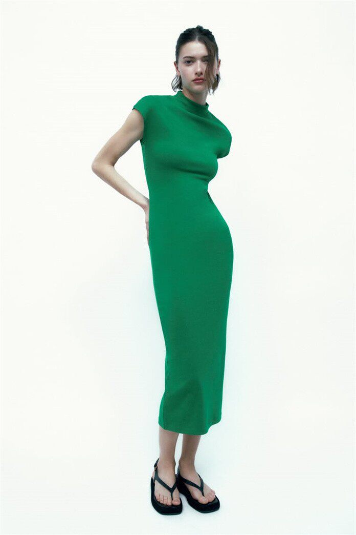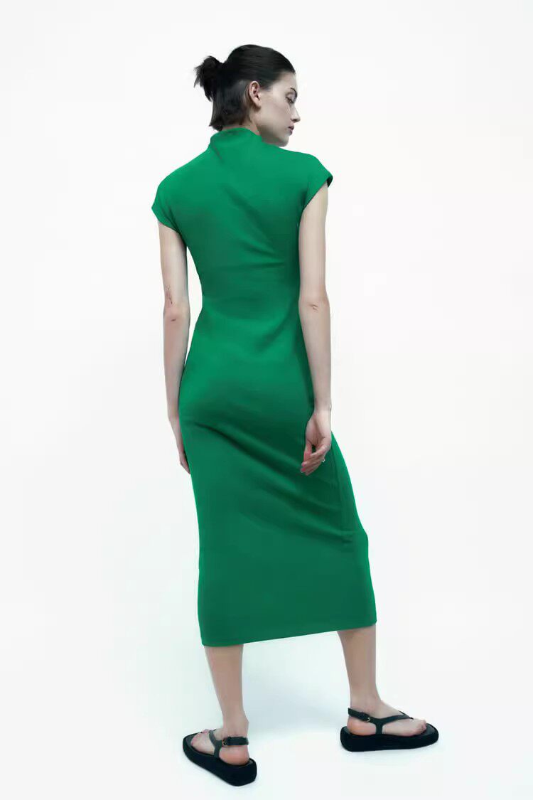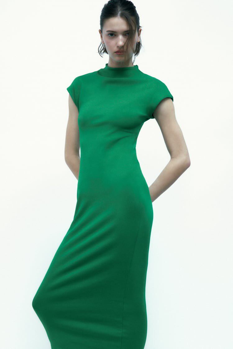 Летнее эластичное платье, короткий рукав, с акцентом на бедрах, облегающий крой, длина миди