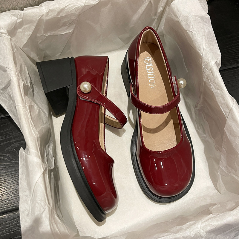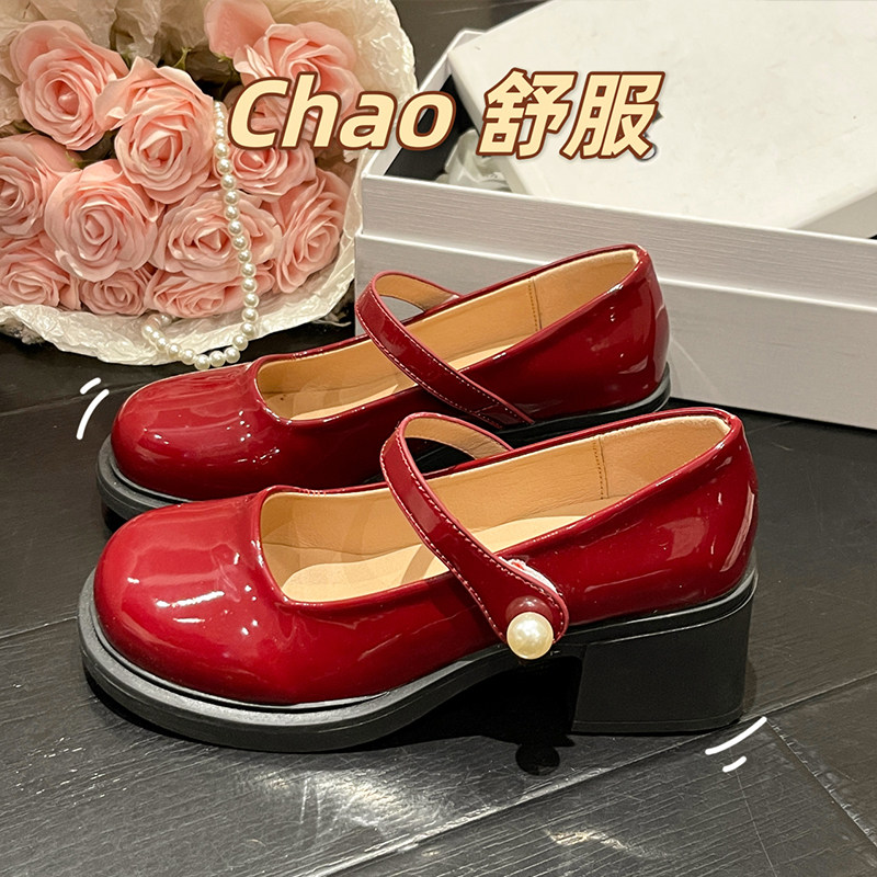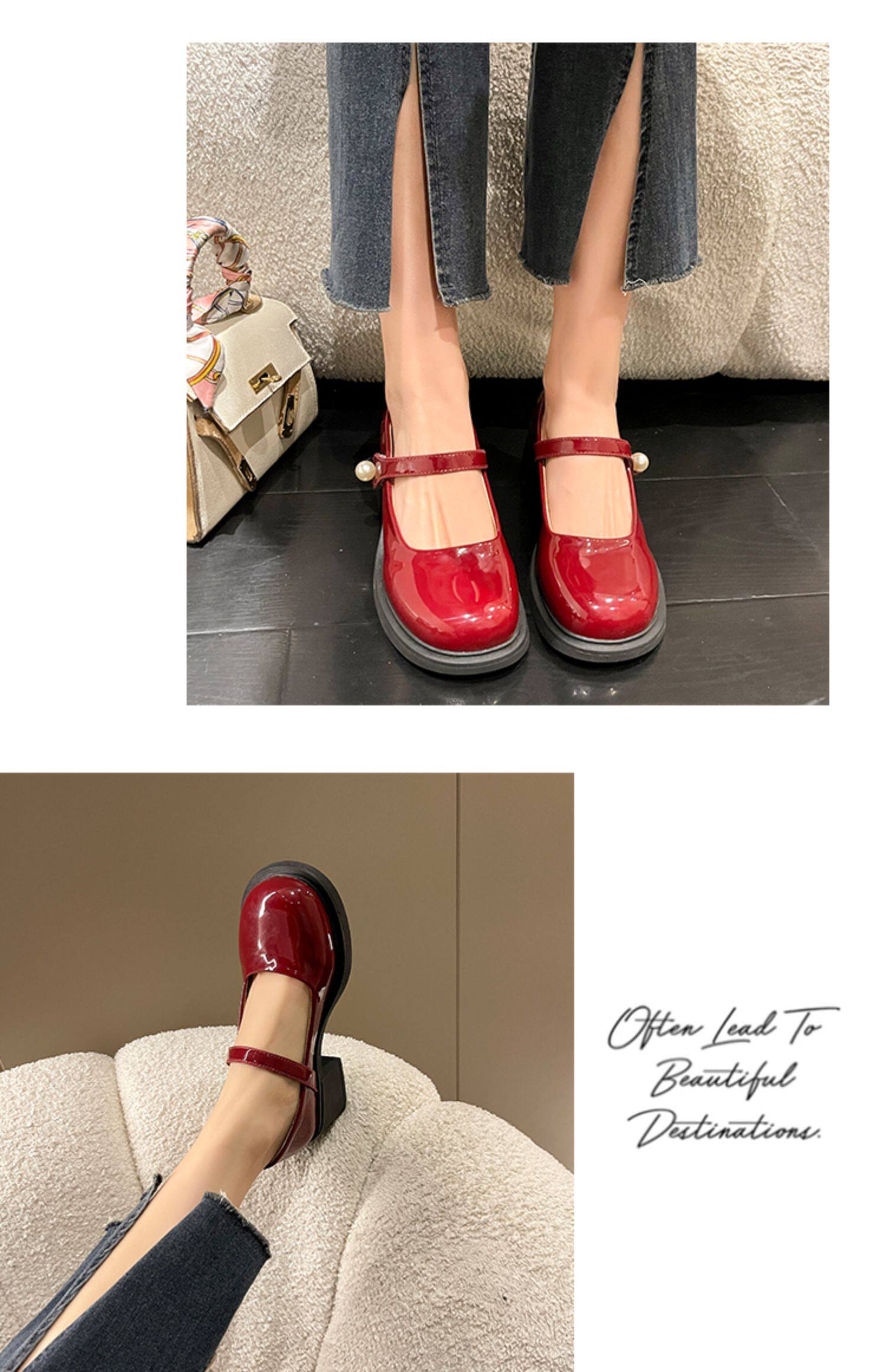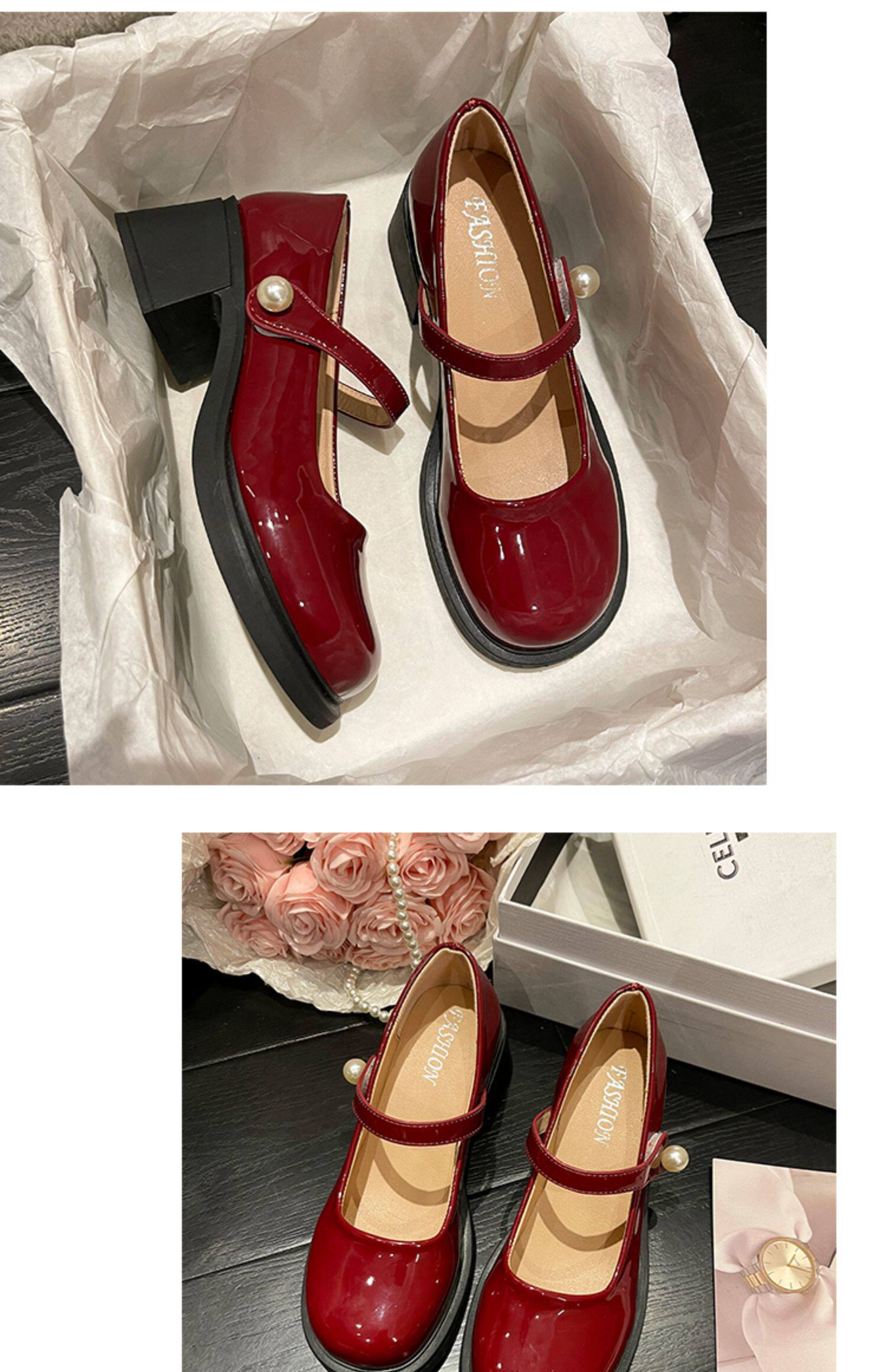 Красные туфли на высоком каблуке, высокая подходит с юбкой для кожаной обуви, коллекция 2023