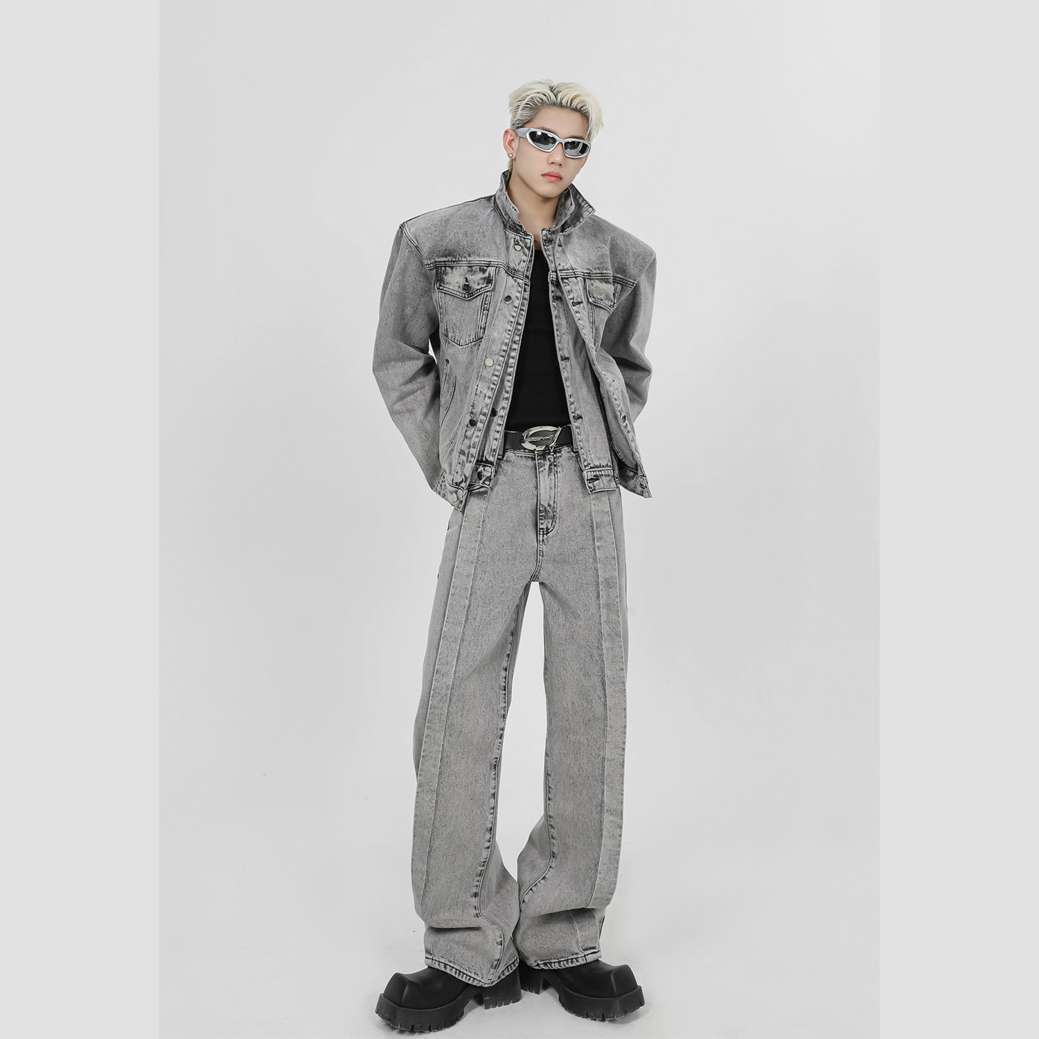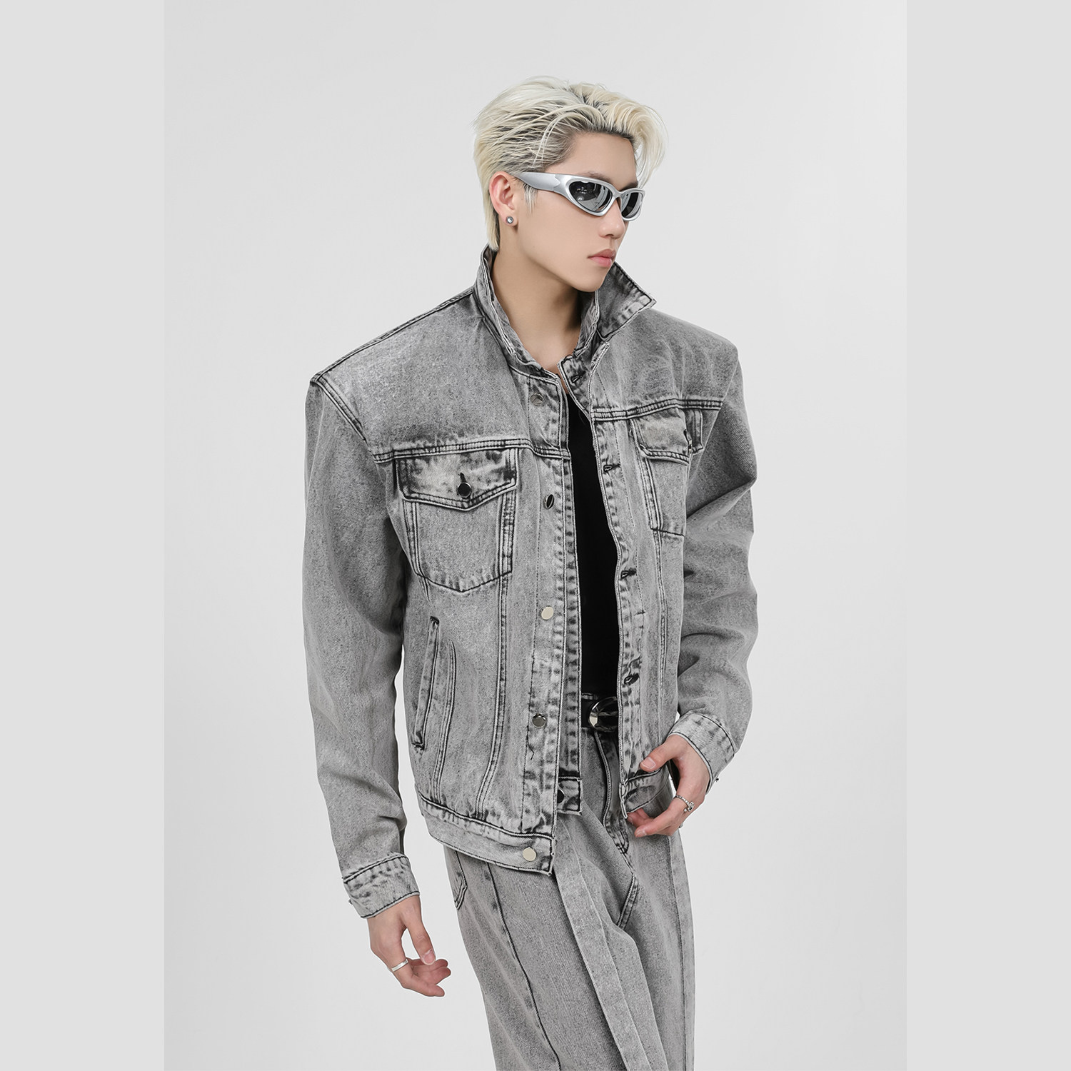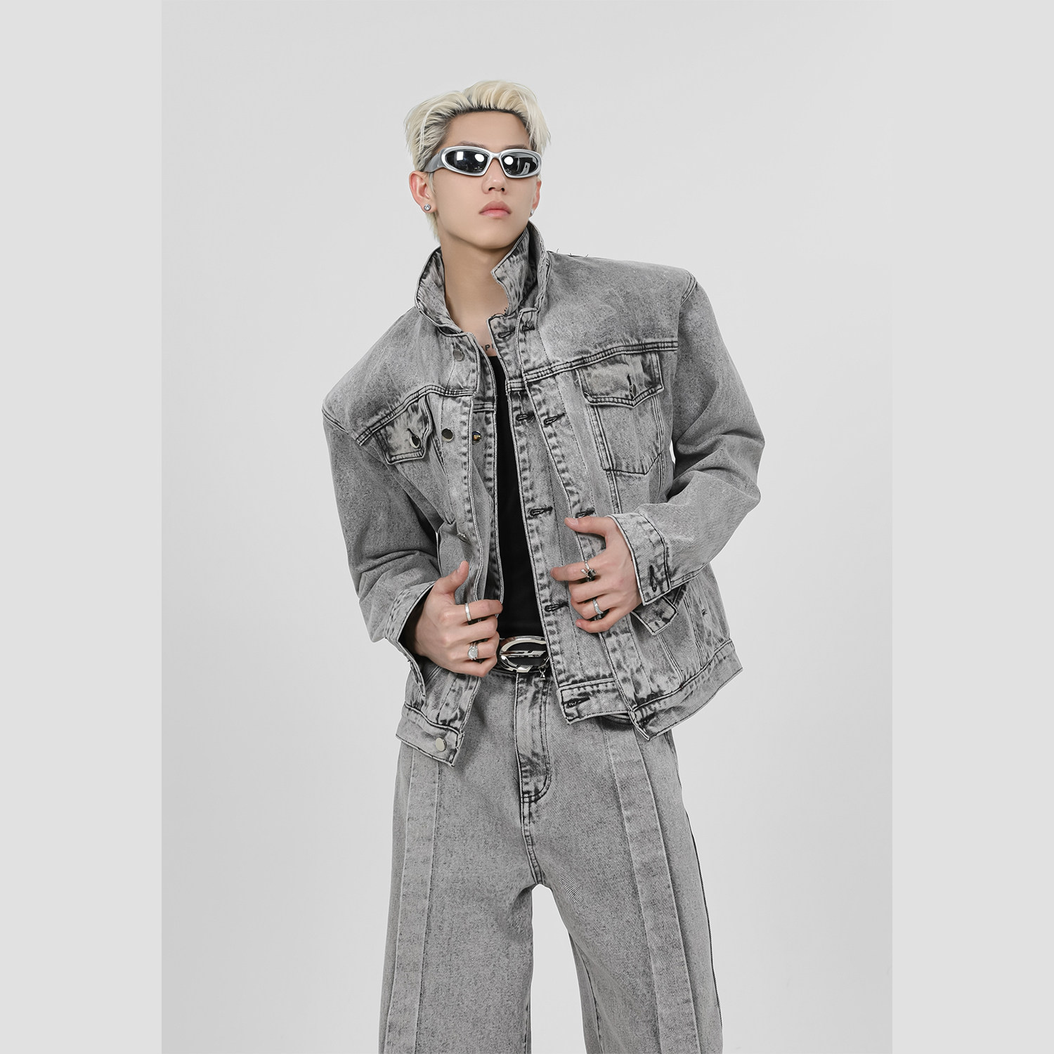 Дизайнерские джинсовые наплечники, комплект, короткая куртка, тренд сезона