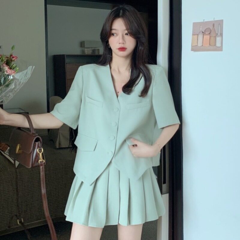 Летний модный пиджак классического кроя, юбка для отдыха, комплект, городской стиль, в корейском стиле, большой размер