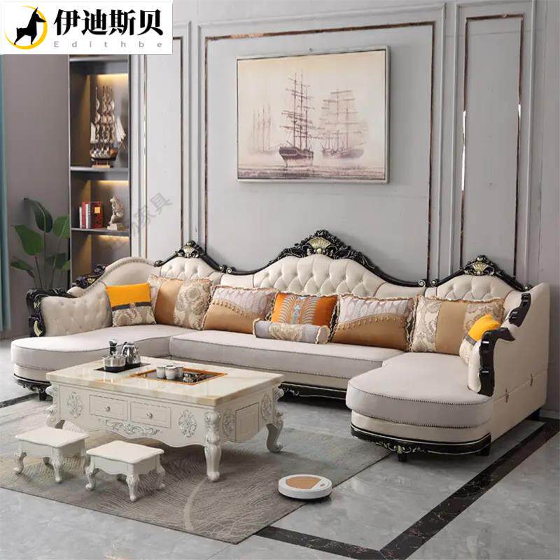 Японский диван с большим масштабным 4 -метровым европейским стилем, ткань, комбинация u -обработанная комбинация Shuang Gui наложница высокой роскошной гостиной.