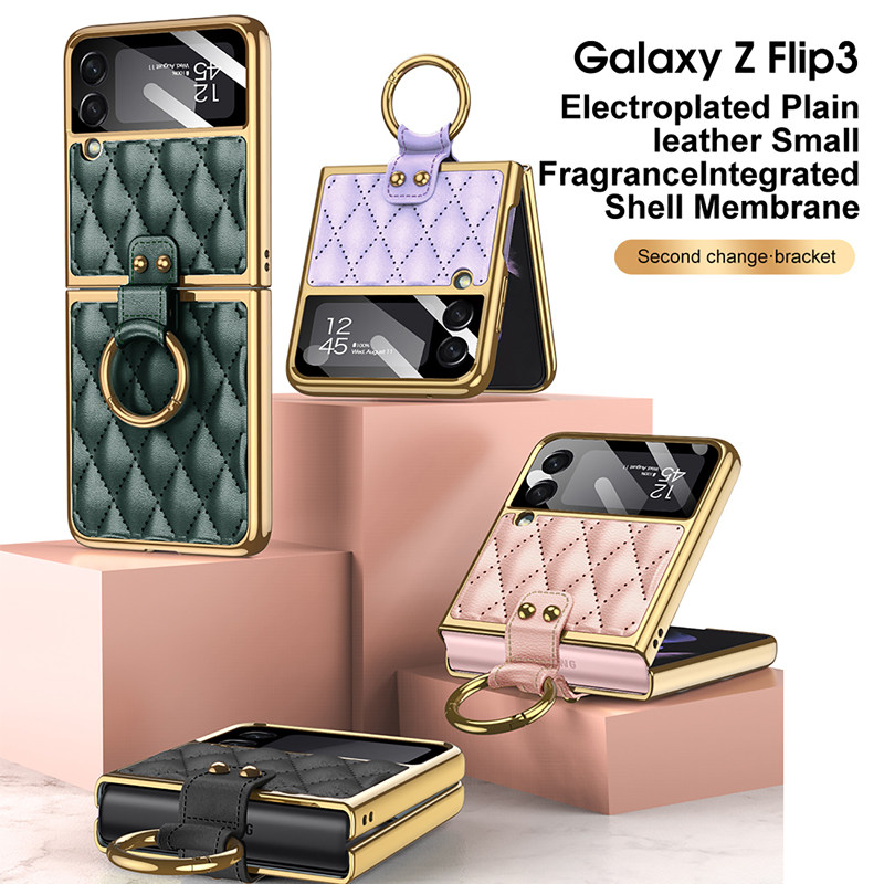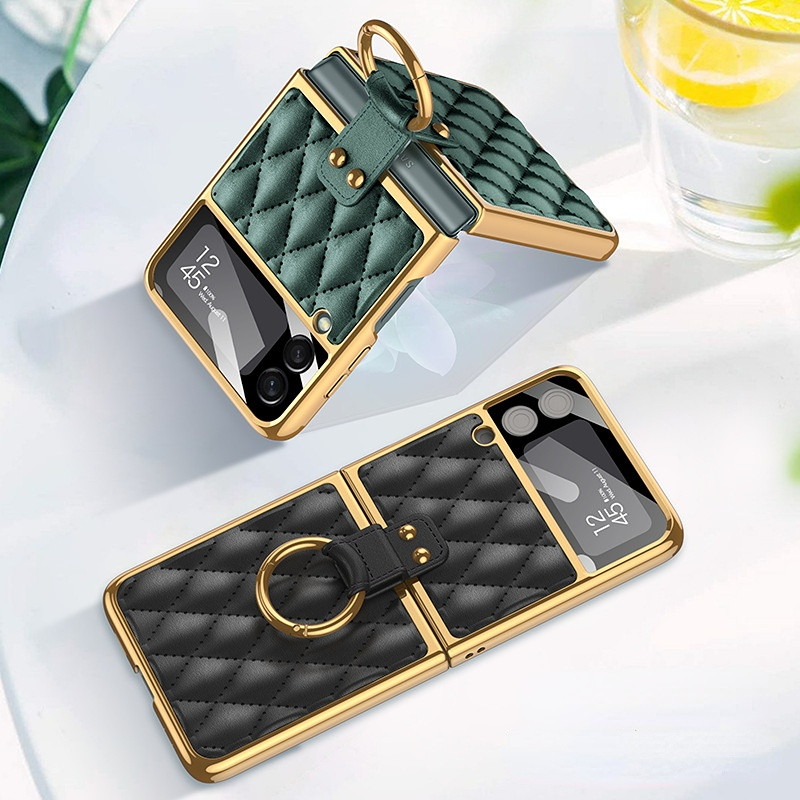 Чехол для Samsung Galaxy Z Flip4 Flip3, простой кожаный складной чехол для телефона с подставкой для кольца, универсальный защитный чехол Z Flip3 4