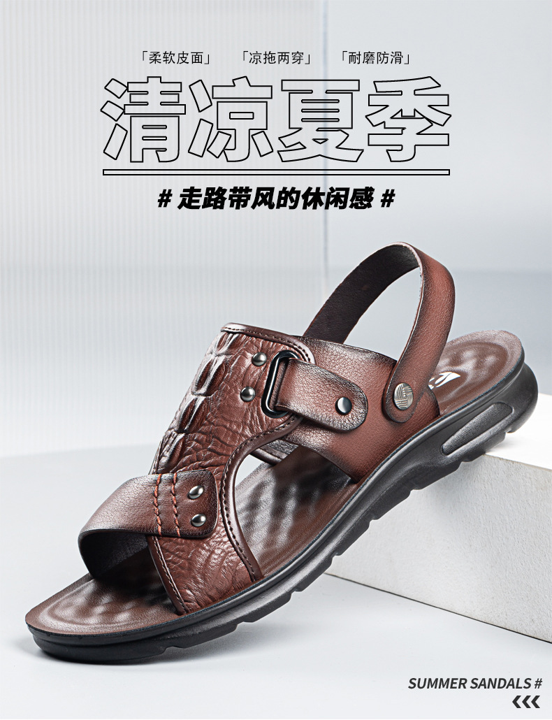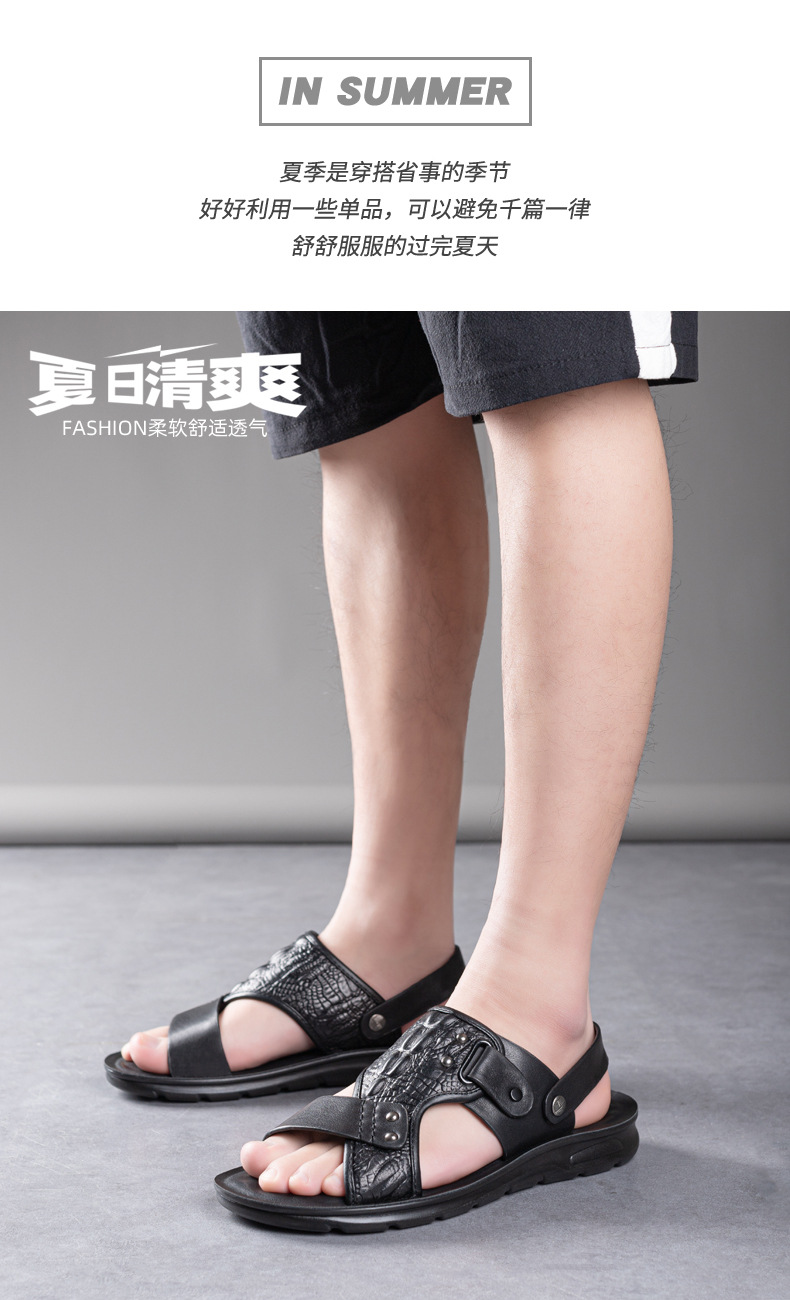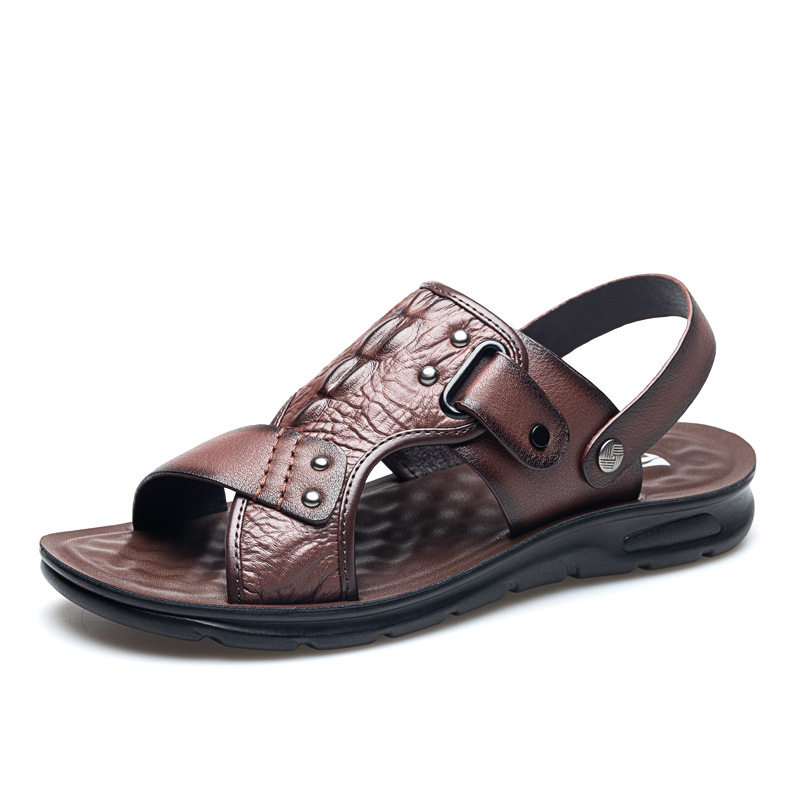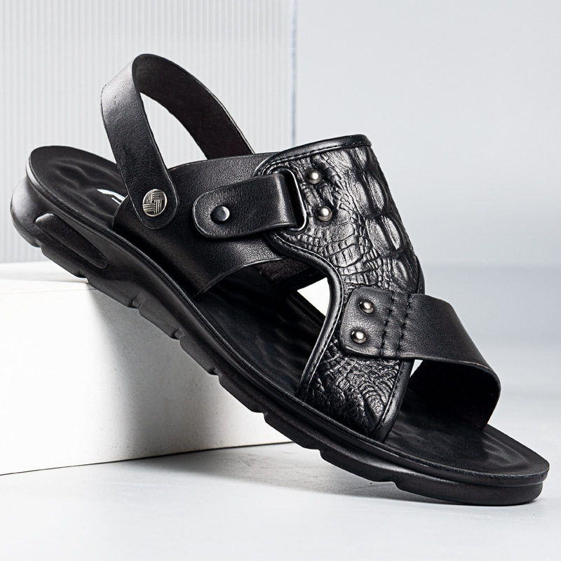 Сандалии, мужская пляжная пляжная обувь, тапочки, коллекция 2023, для среднего возраста, крокодиловый принт, из натуральной кожи, мягкая подошва